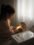 The LED lamp does not heat up, it is completely safe. The lamp of the humming MOONIE bunny is also great for older children who often have nightmares and are afraid of the dark. You can turn on the night lamp itself without sound and leave it on for the whole night.