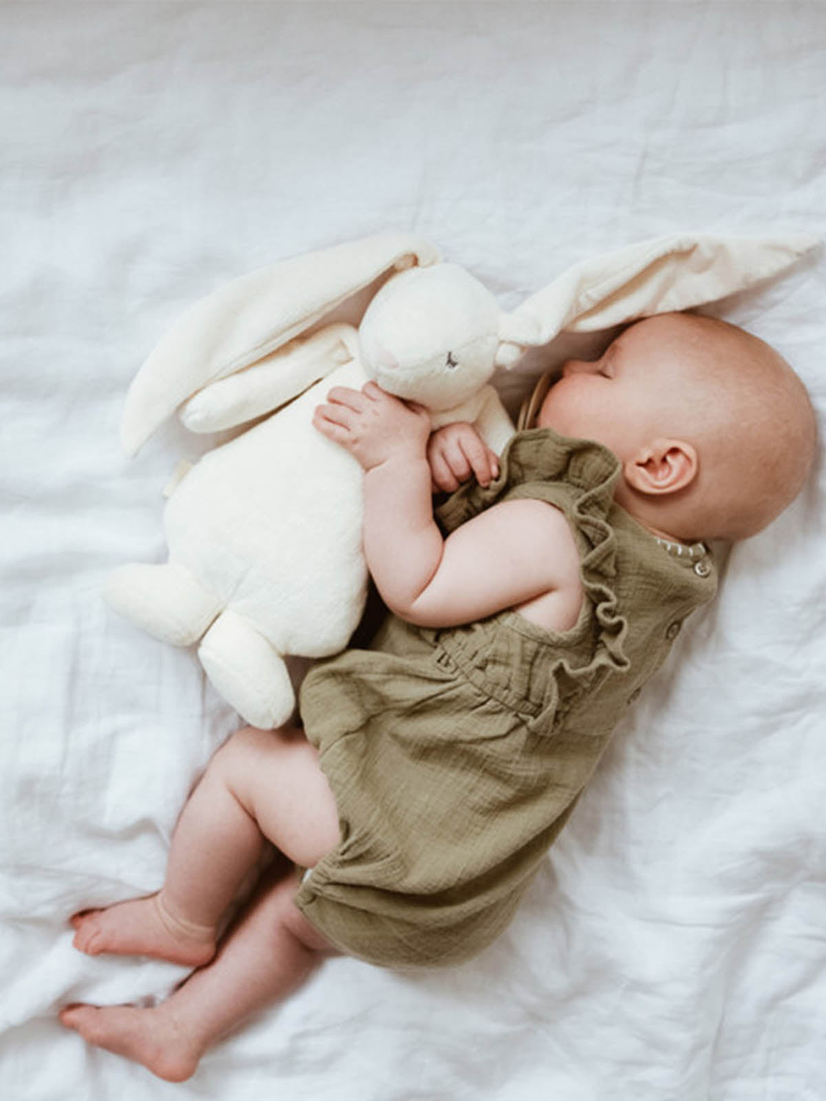 The MOONIE bunny can be used from the first day of a childs life! To make this possible we made sure that all the materials from which the MOONIE bunny are made are OEKO-TEX certified, and they are super delicate and pleasant to the touch.