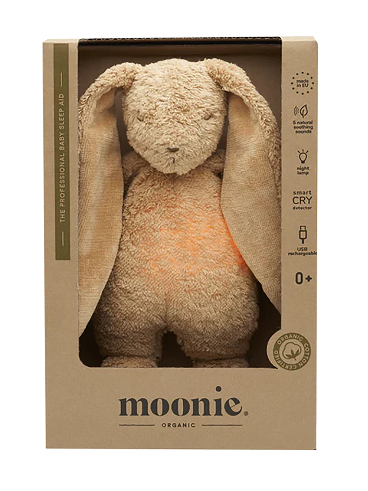 MOONIE the humming bunny has a Smart Cry Detector, designed for moments when your child suddenly wakes up. As soon as your child starts to stir, the Smart Cry Detector triggers a safe, natural, pink noise soothing your child ensuring they return to a restful sleep.
