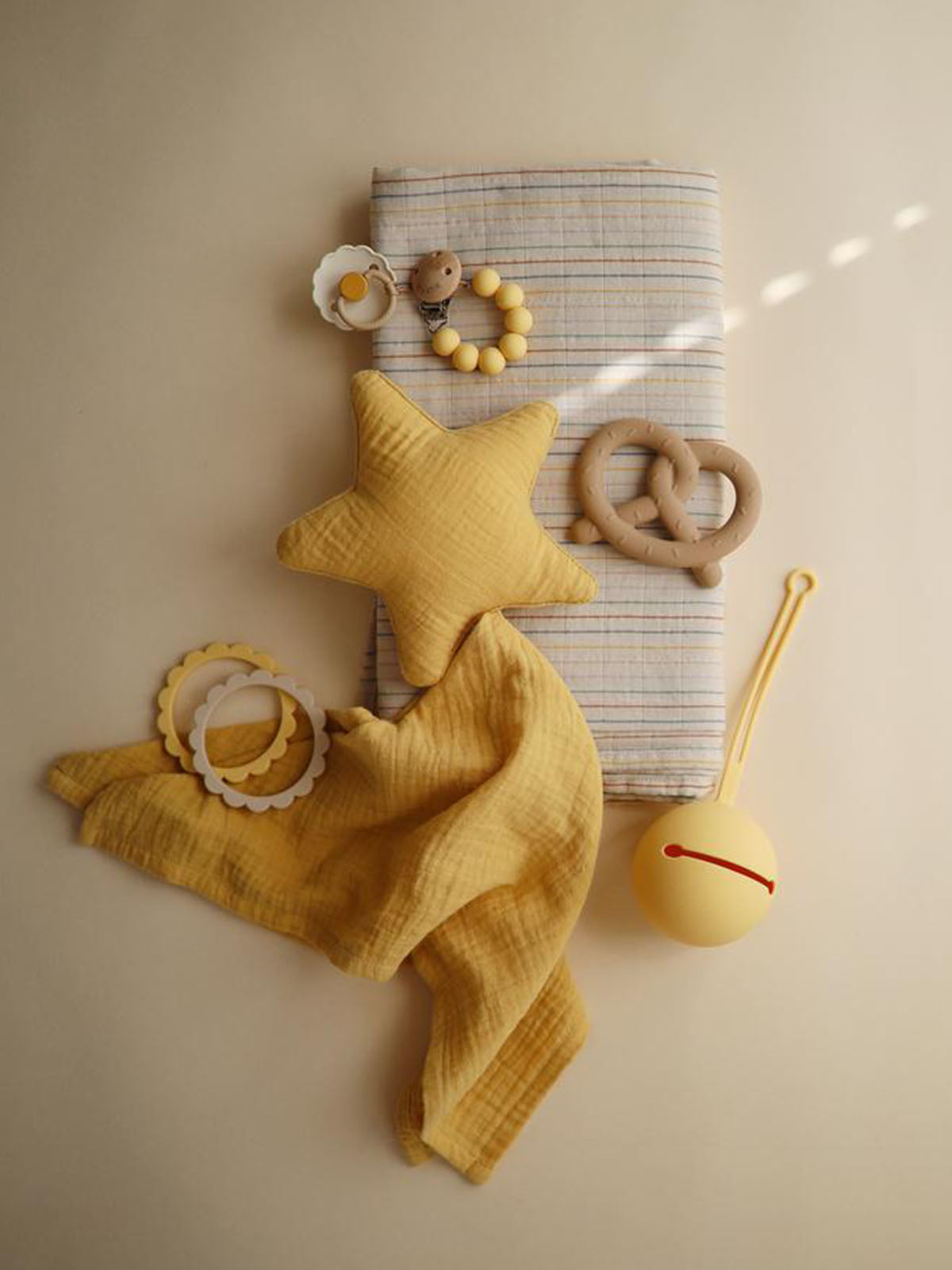 The Lovey Blankets are made of 100% organic cotton muslin, and they will stay soft after every wash.