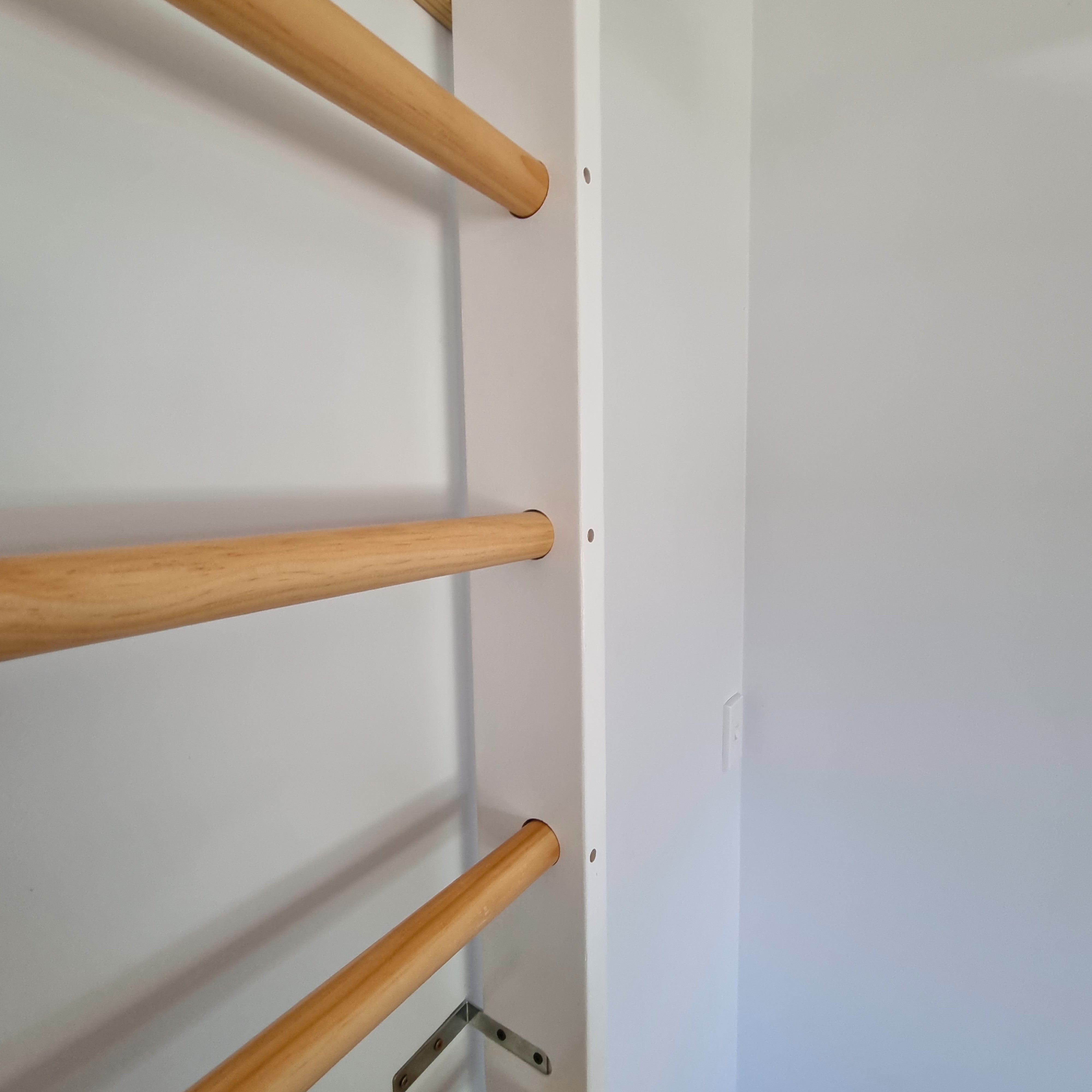 Turn any wall into a compact indoor climbing frame NZ setup with our Swedish Ladder (also known as Swedish wall bars or stall bars). Designed for ages 3+, it supports screen-free, Montessori-inspired play that builds core and upper-body strength, balance, agility and coordination.