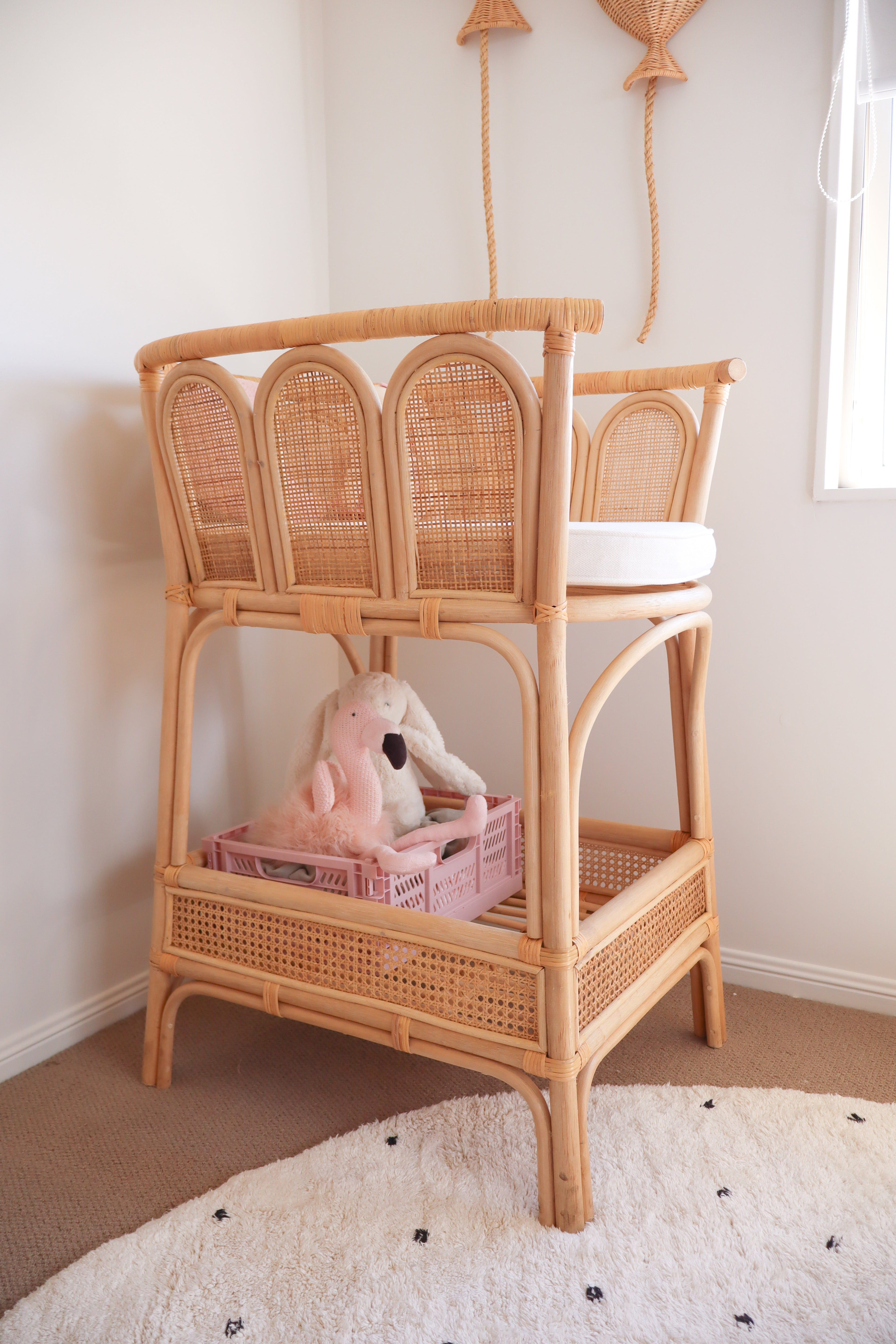 Upgrade your nursery with our Scallop Change Table! This charming rattan change table not only offers storage space underneath, but also features lovely scallop detailing. And with a removable mattress cover, keeping things clean is a breeze. It's the perfect addition to any stylish and functional nursery.