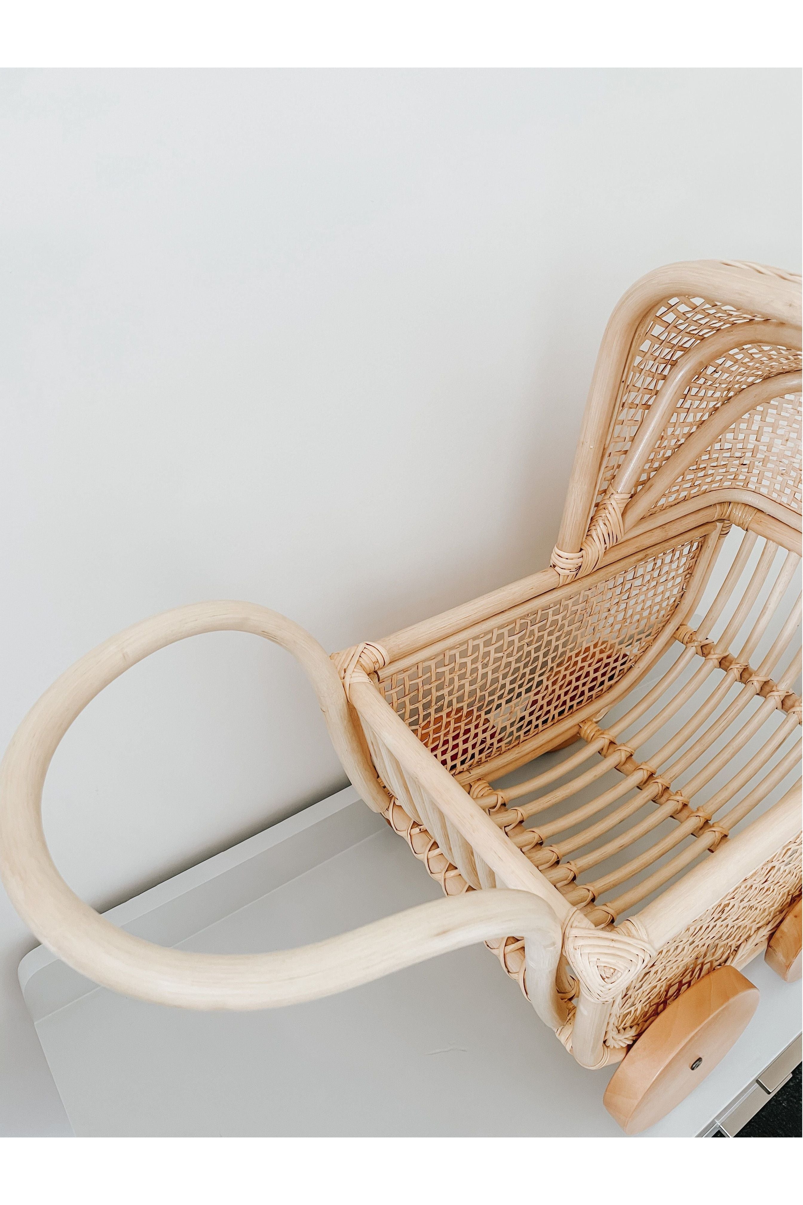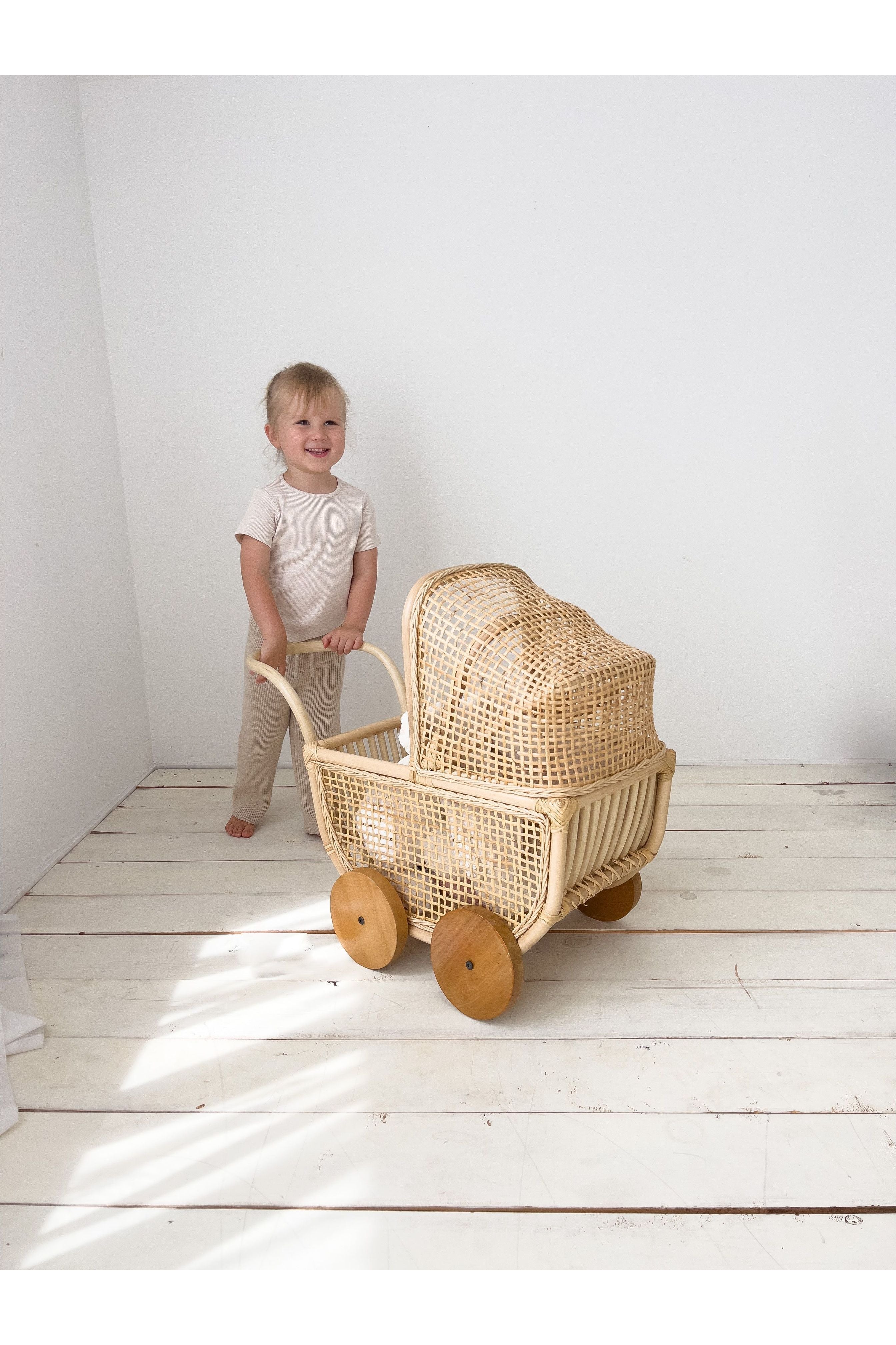 Our rattan dolls pram feature wooden wheels for extra stability and a large spacious pram cot to fit lots of teddies or dolls.