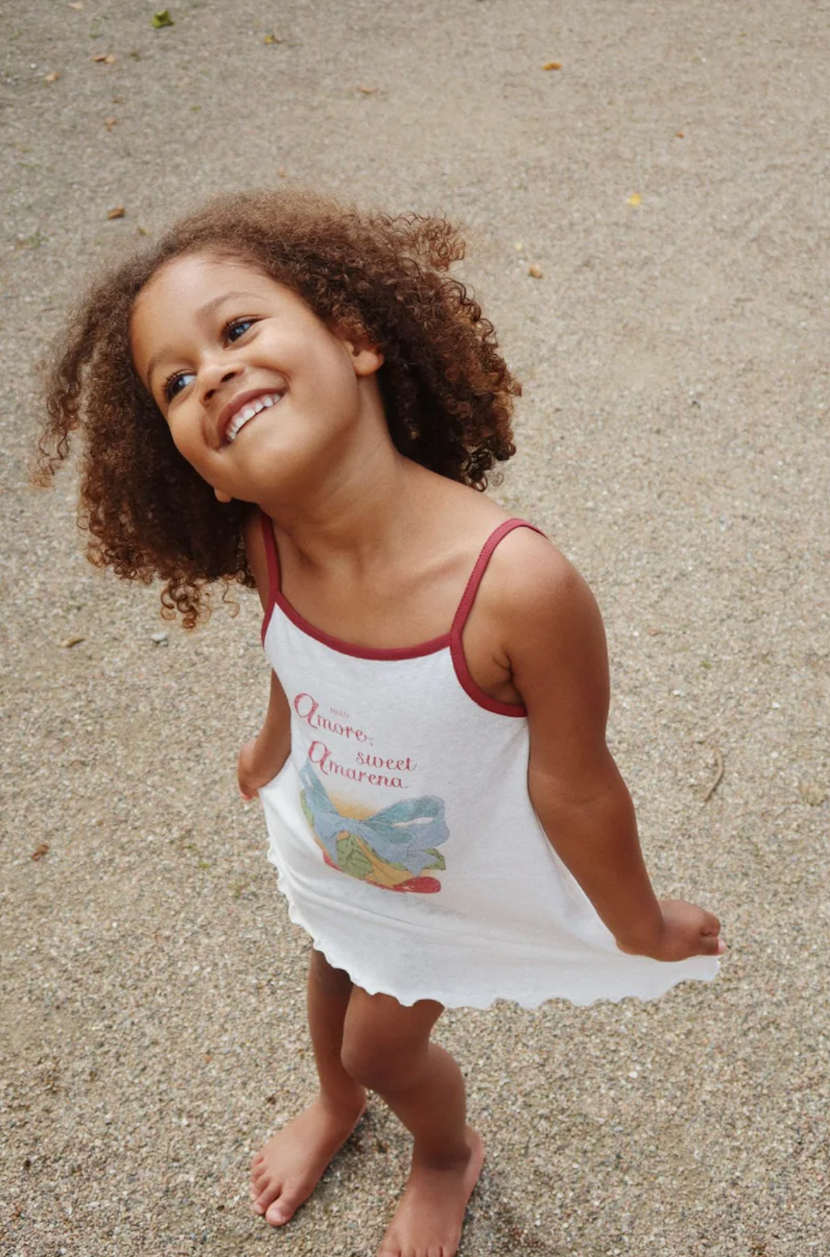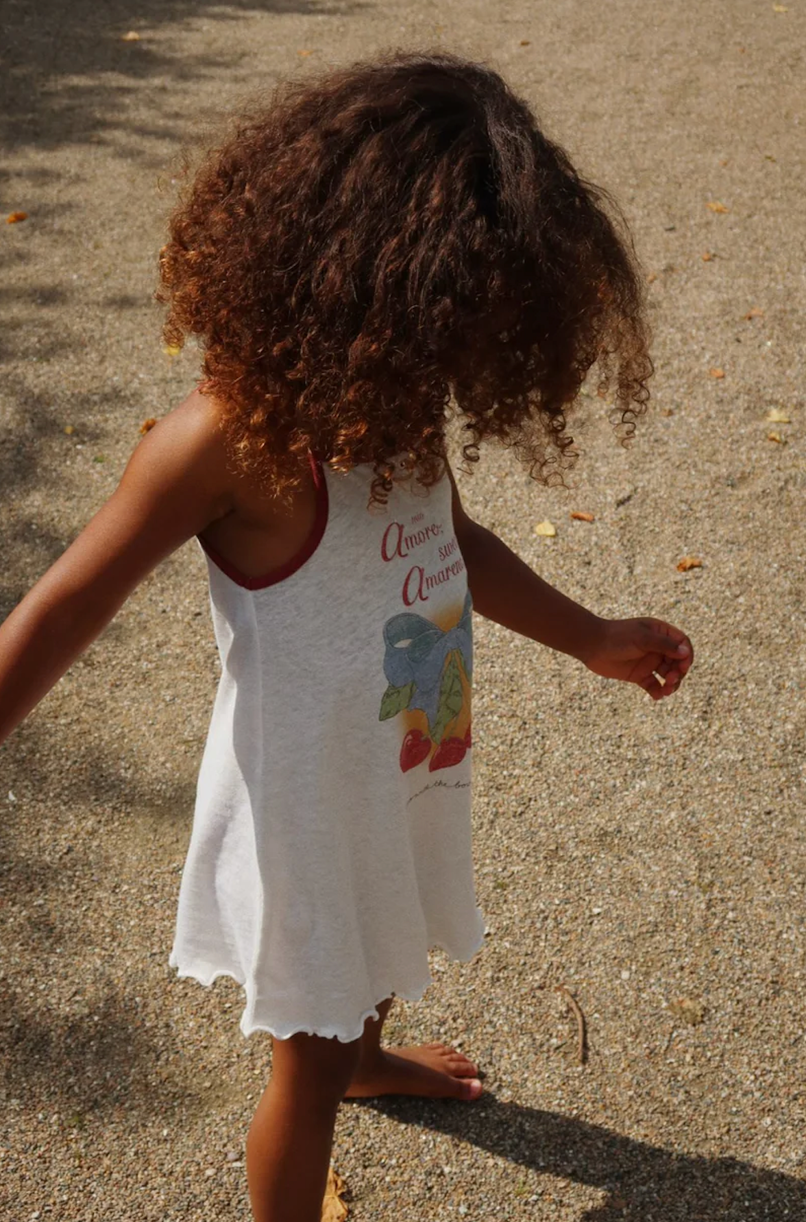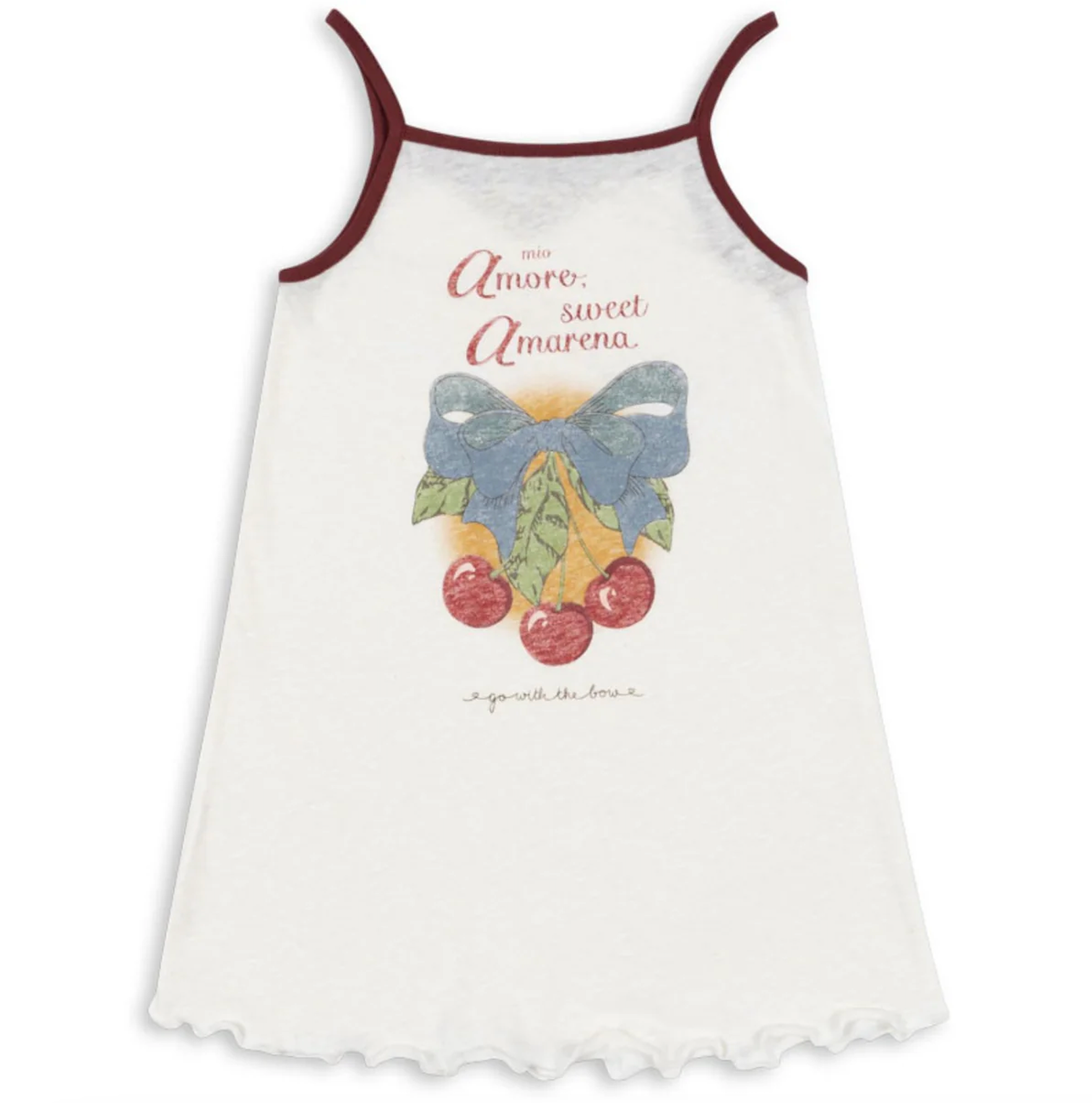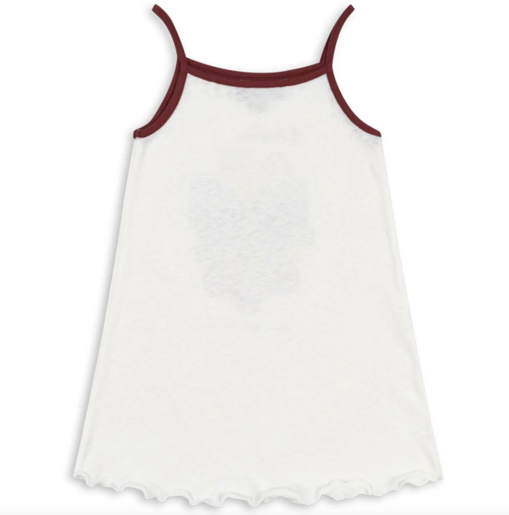 Introducing the Konges Sløjd Off White/Amarena Era Strap Dress, exquisitely crafted from a luxurious 70% organic cotton and 30% linen blend.