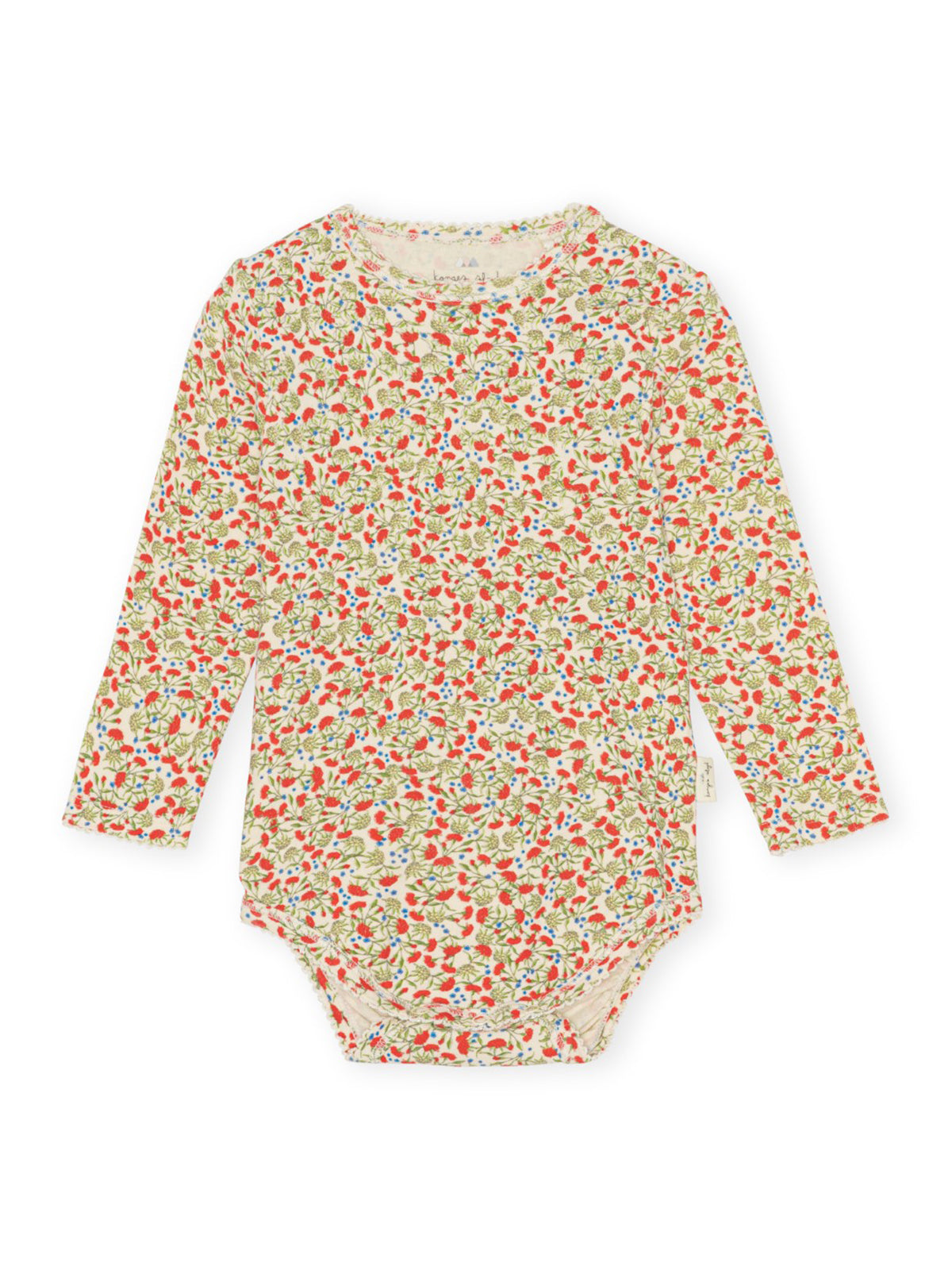 Konges Slojd's super soft bodysuit gives your child the perfect feel of comfort throughout the day. This soft, long-sleeved wrap bodysuit made in 95% organic cotton and 5% elastane has a hint of stretch. Snap buttons along the sides (for Prem to 6m sizes) and crotch make it easy to wrap the garment around the baby.