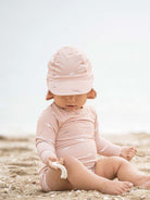 The gorgeous Toshi swim flap cap features a contoured neck flap for enhanced sun protection, head tie for adjustable sizing and chin tie to secure the hat. Most importantly, the classic flap cap has a well structured brim that maintains shape when wet.