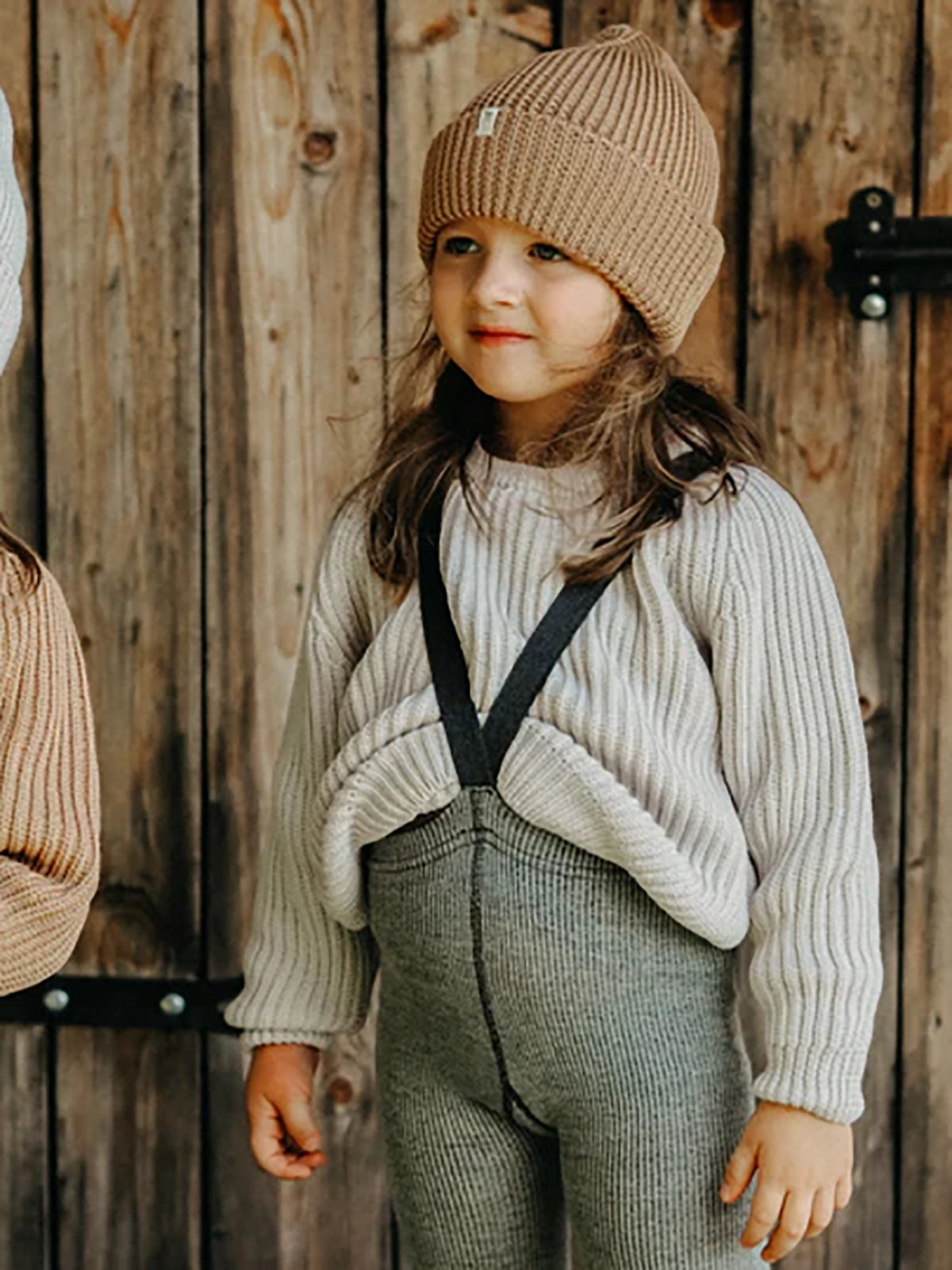 The footless wooly tights with braces have the softest feel, keeping your little one warm and cozy during any winter adventure.