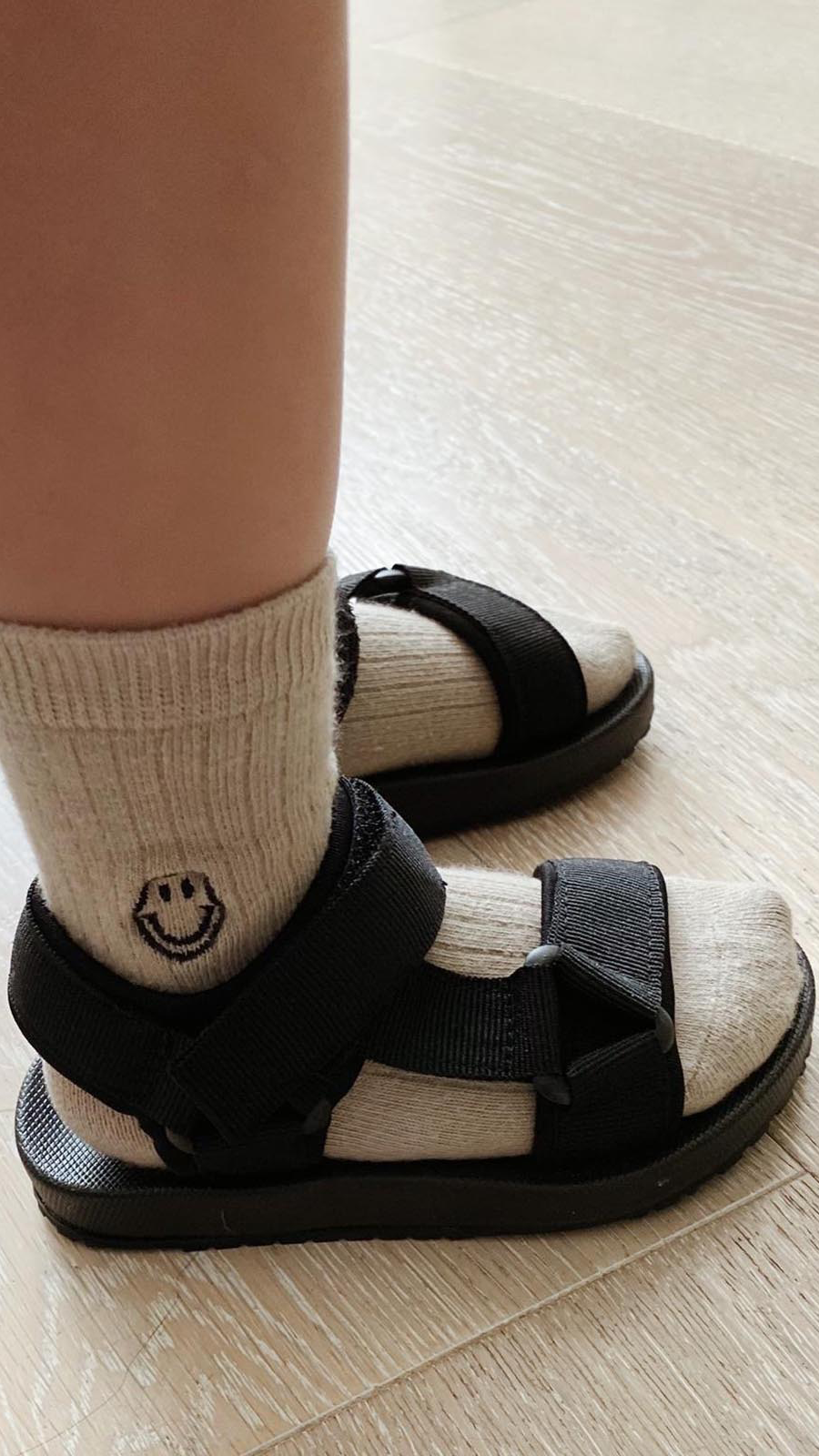 They have the Signature Tiny Trove logo detailing on the top strap. Pair with socks for extra comfort/warmth.