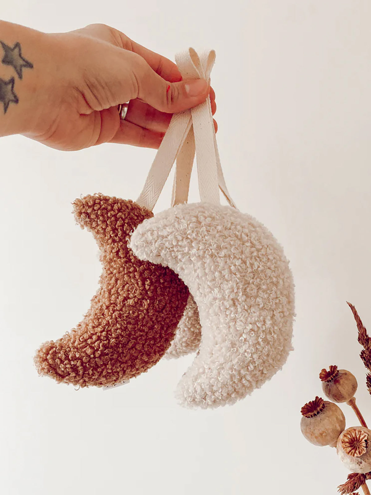 Cutest & softest dummy holders, the Shushu Moons will soon become your babe's new favorite. They are made out of teddy boucle fabric and come with a protective carry tote bag.