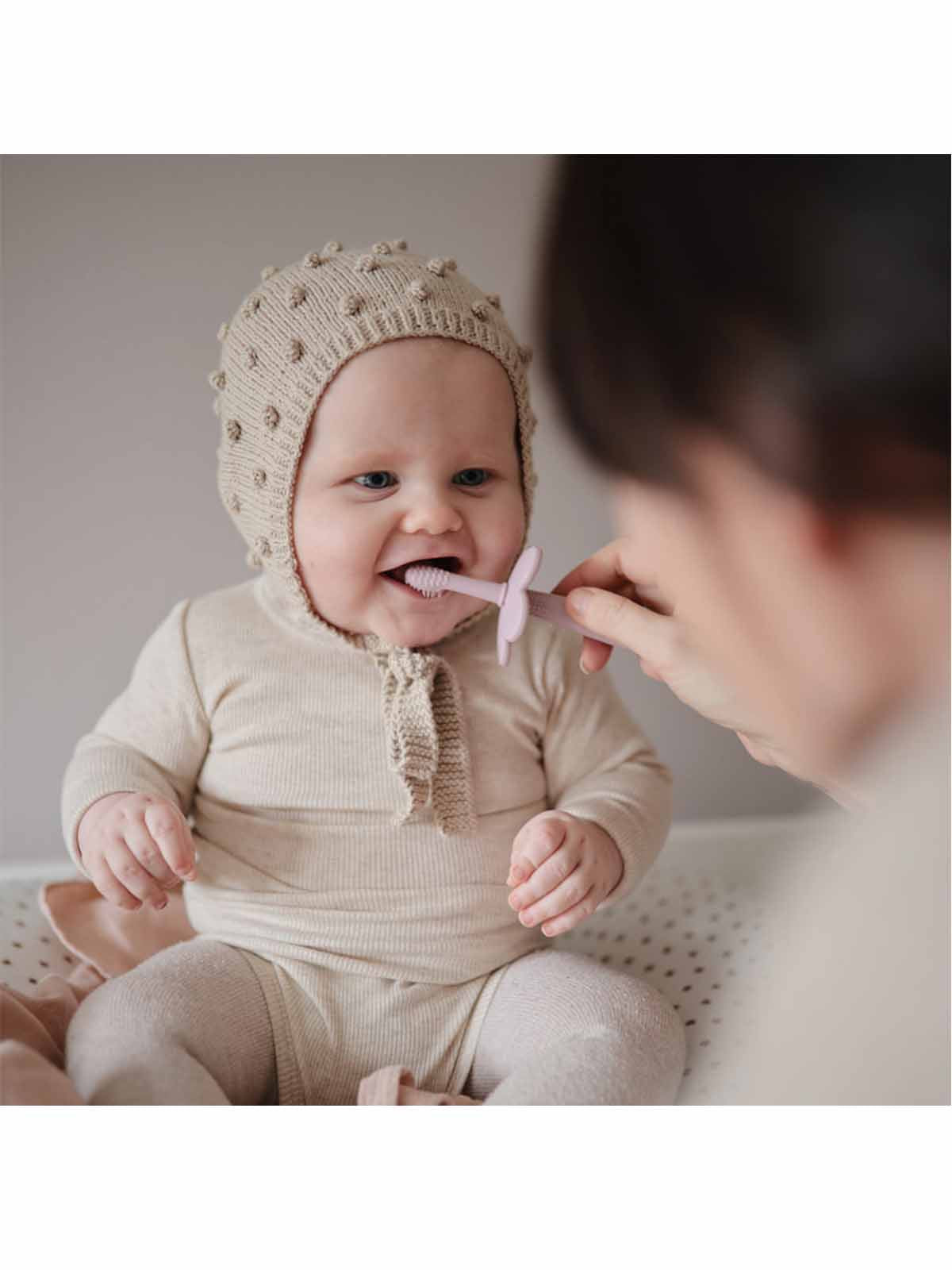 Building good habits starts early, and with a training toothbrush children can start prioritising oral hygiene. The toothbrush is made from 100% food-grade silicone, and it is designed with super soft bristles that gently clean and stimulate gums and teeth.