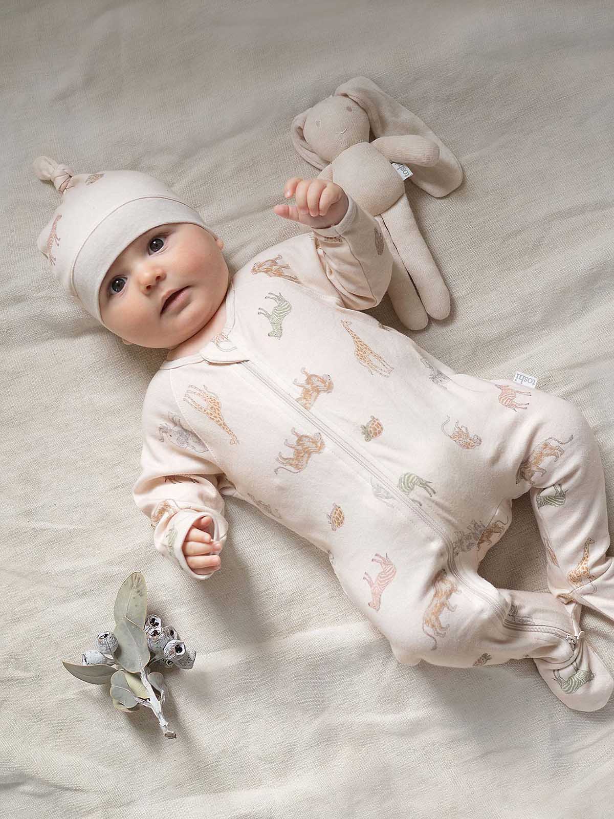 This beanie features the Tribal design, with majestic creatures of the wilderness. This is an original, hand illustrated design and is exclusive to Toshi. Match with the baby tribal onesie for a matching set.