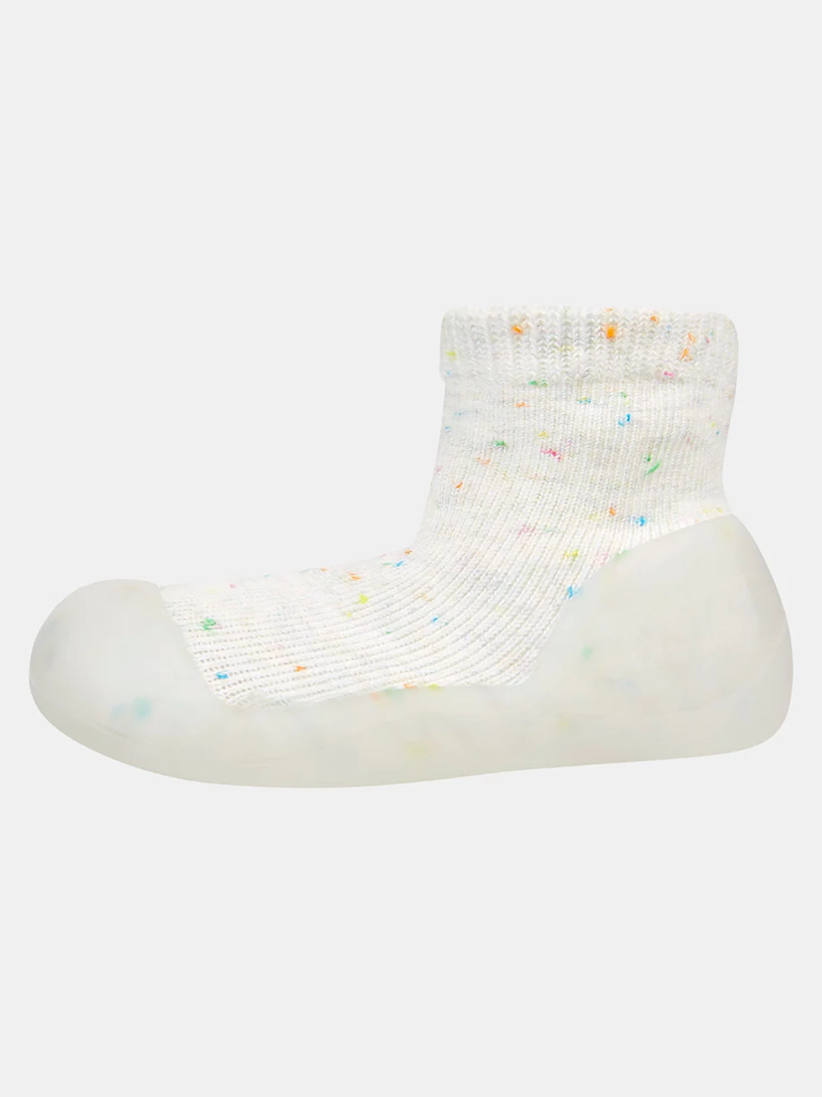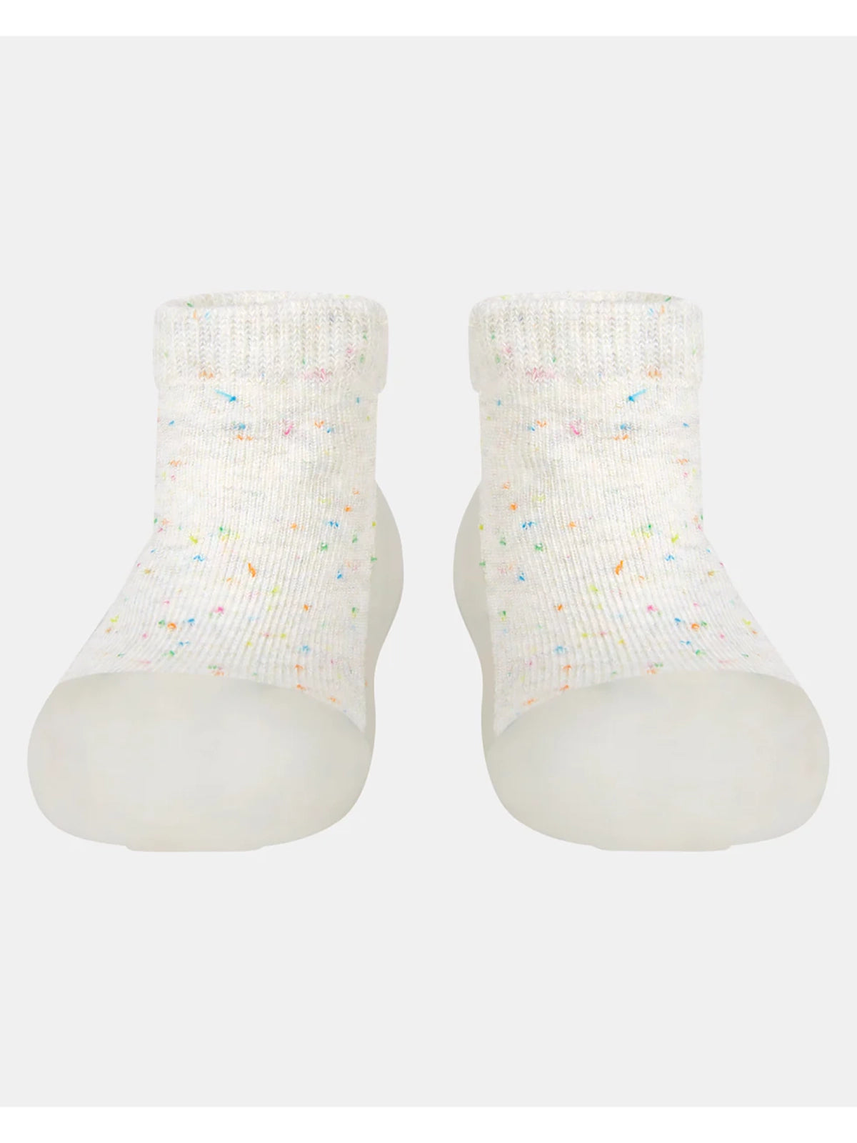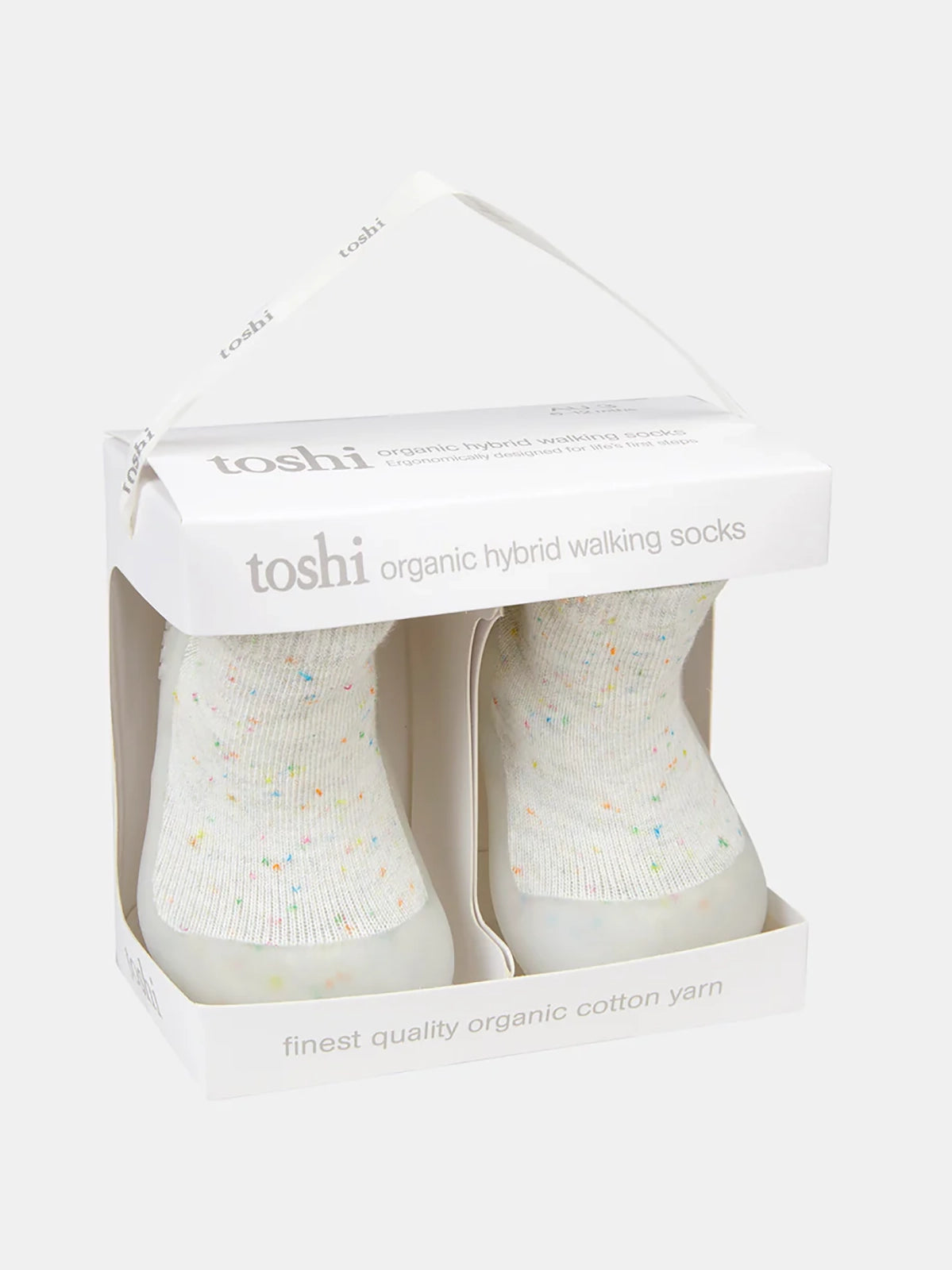 Toshi Organic Hybrid Rubber Sole Socks are ergonomically designed for life’s first steps. Our fusion shoe-socks feature an inner sock crafted from the finest quality organic cotton yarn. The organic cotton is soft and gentle on delicate feet, as well as our precious environment. Rubber soles cushion each step, providing flexibility, balance and stability. Baby safety is supported with a skid resistant rubber sole grip. Toshi Rubber Sole Socks are designed for ease of slipping on and off. Carefully crafted with a knit cuff, our Rubber Sole Socks stay on while maintaining healthy circulation. Adorn your baby’s feet with a sophisticated colour palette, refined design and intelligent functionality.