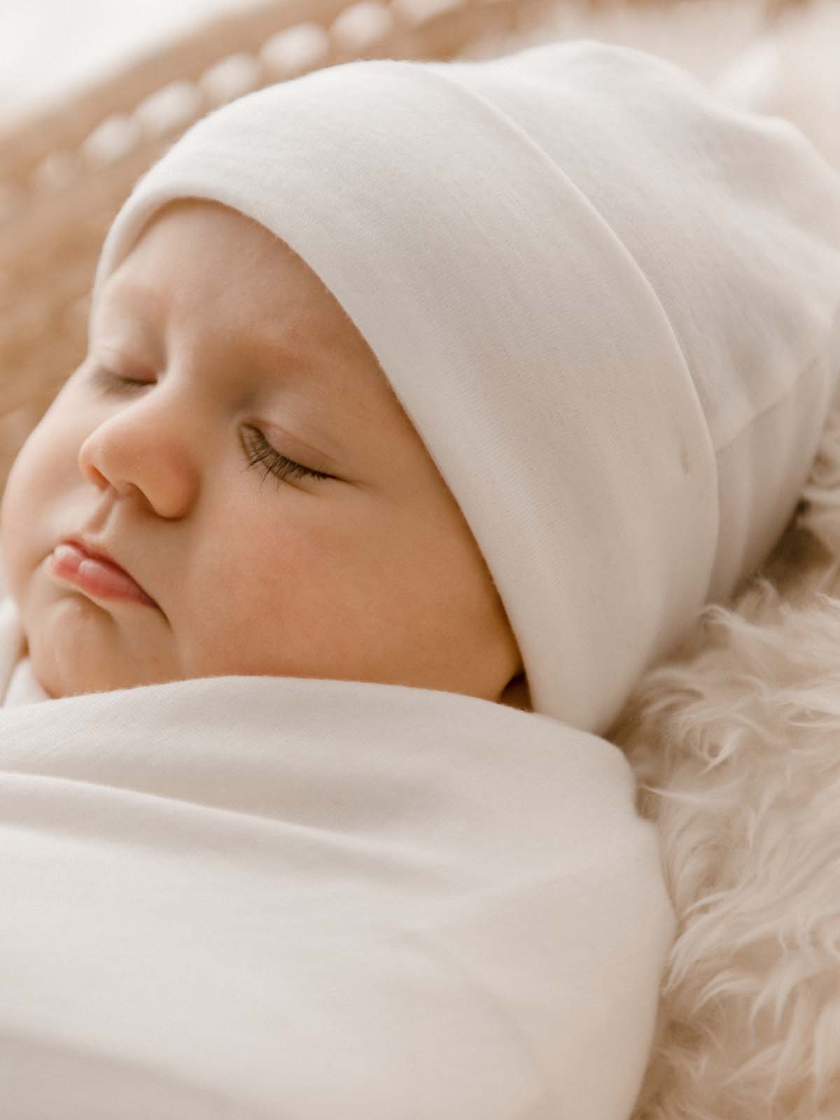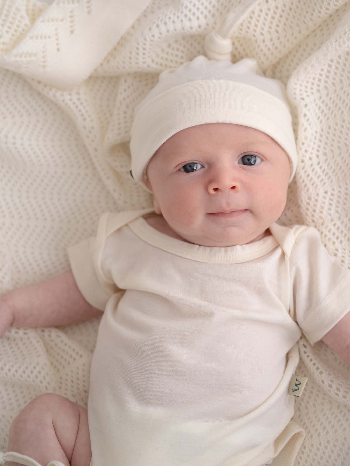 The knot design is the perfect fit for a baby’s head. Its clever design and moderate stretch allows for adjustment as the head continues to grow, while careful construction minimises seams which can cause irritation.