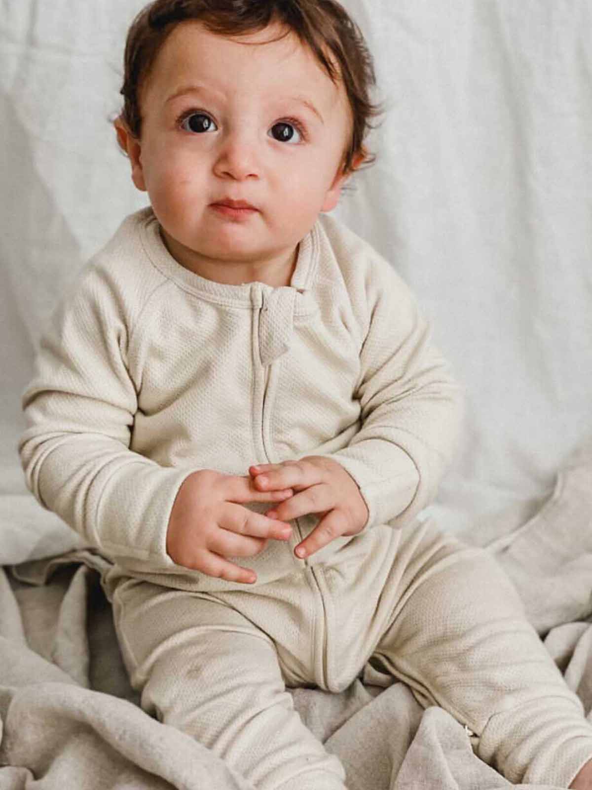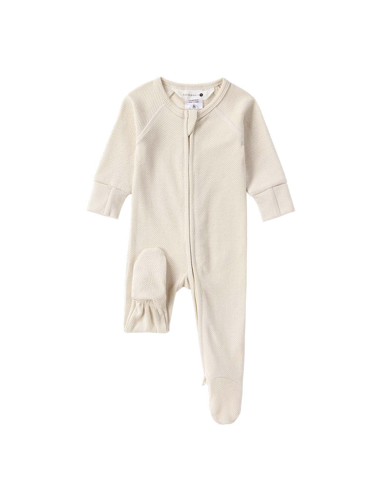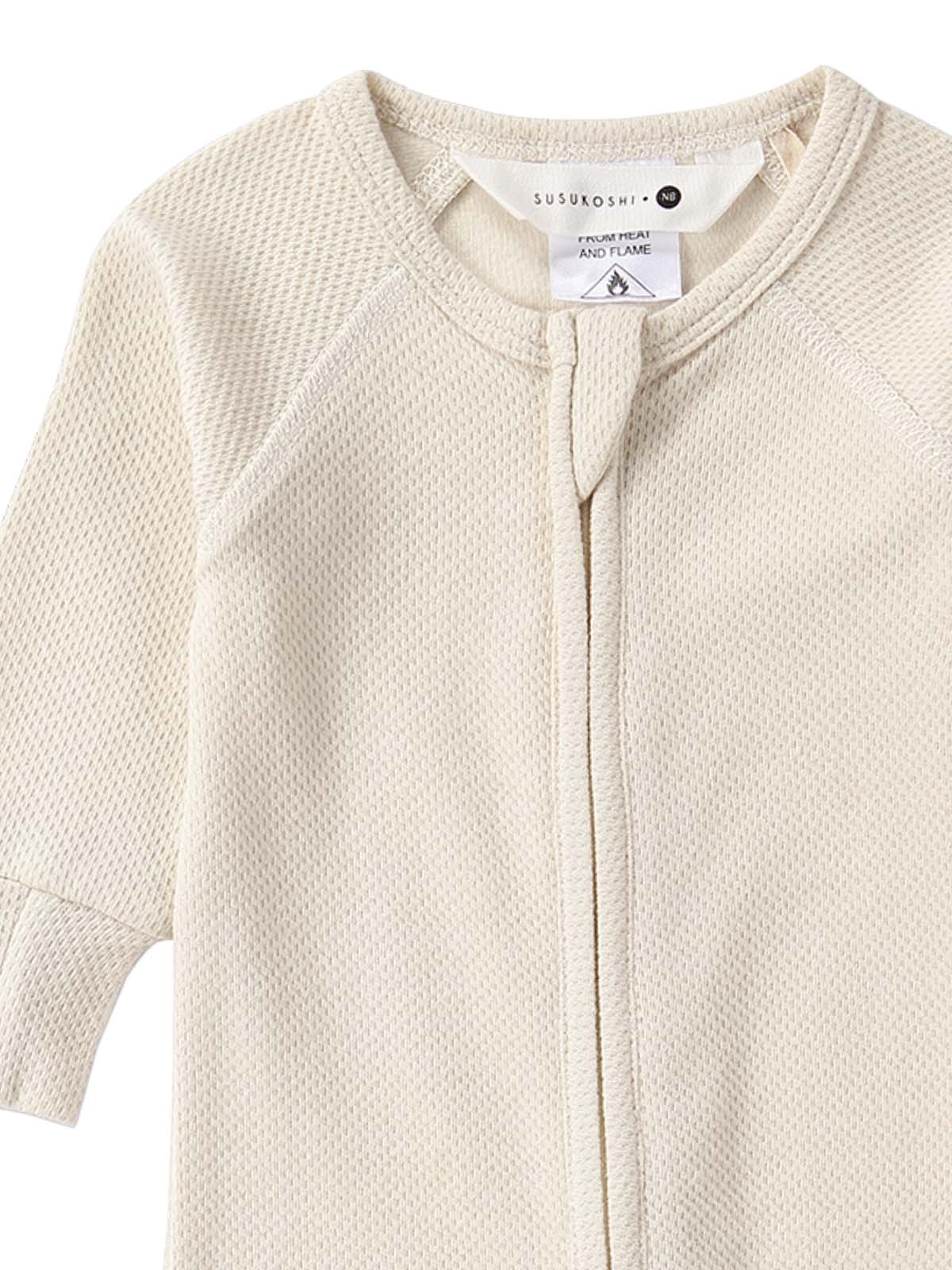 SUSUKOSHI Organic Zip Growsuit - Powder Pointelle