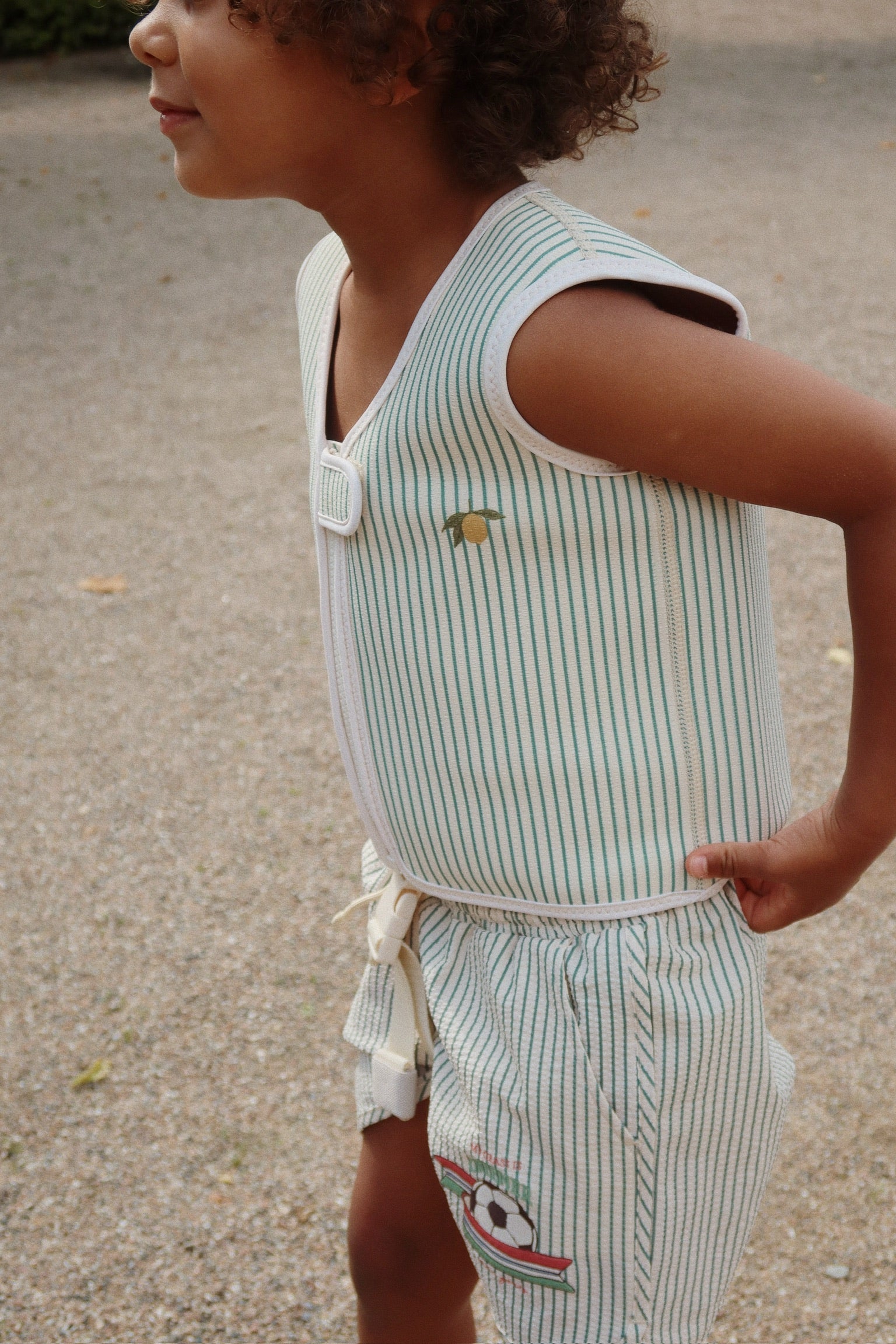 The KONGES SLODJ Ellis Swim Vest in Tea Stripe provides essential support for beginning swimmers. This buoyancy aid helps children gain water confidence while developing independent swimming skills. Perfect for those first aquatic adventures! Available in two sizes: 1-2 years (11-15 kg) and 2-3 years (15-19 kg).