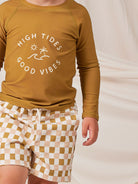 Featuring our ‘high tide good vibes’ graphic on color ochre.