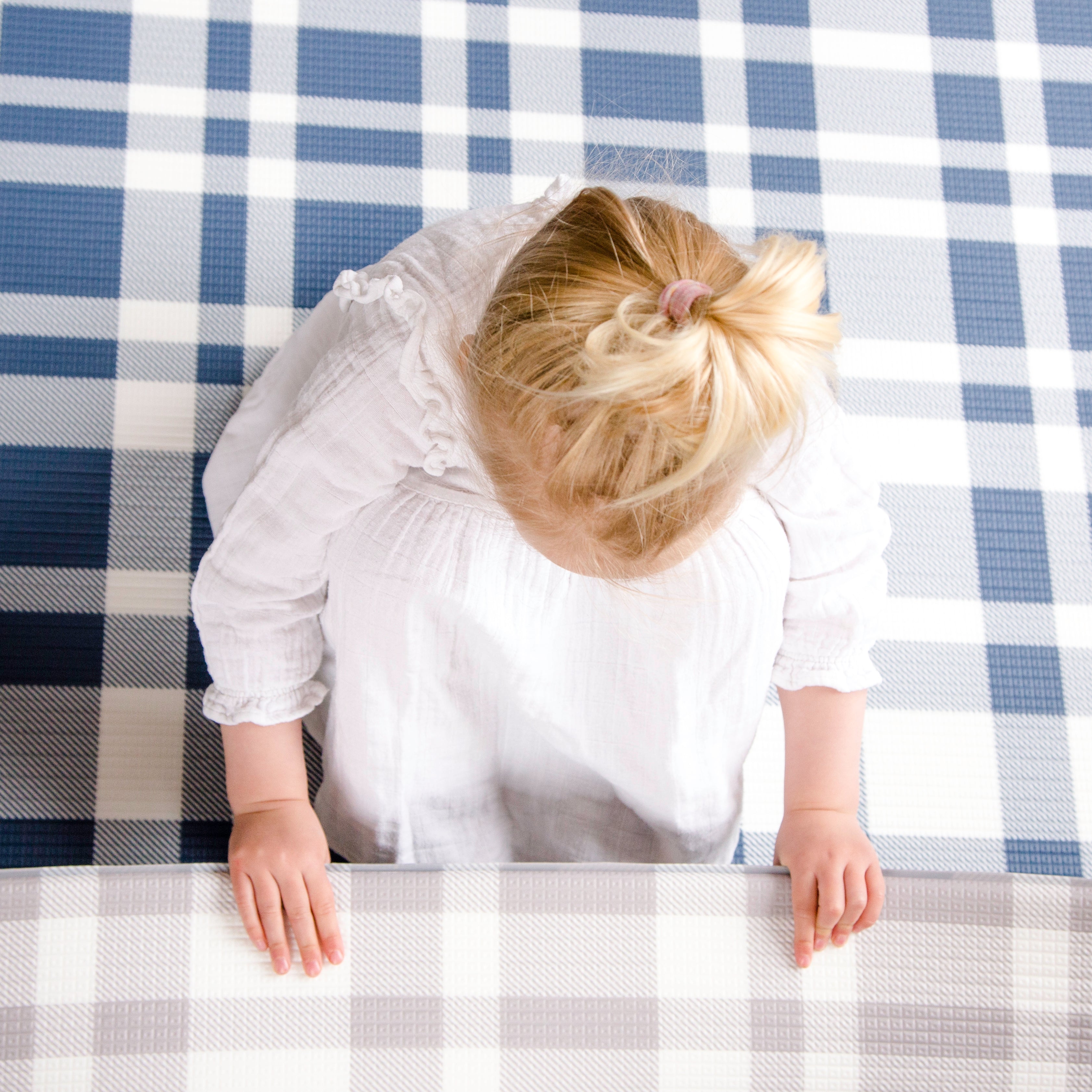 On the reverse, select from either Grey or Rose Homepark Check to provide an equally timeless alternative look from the same play mat.
