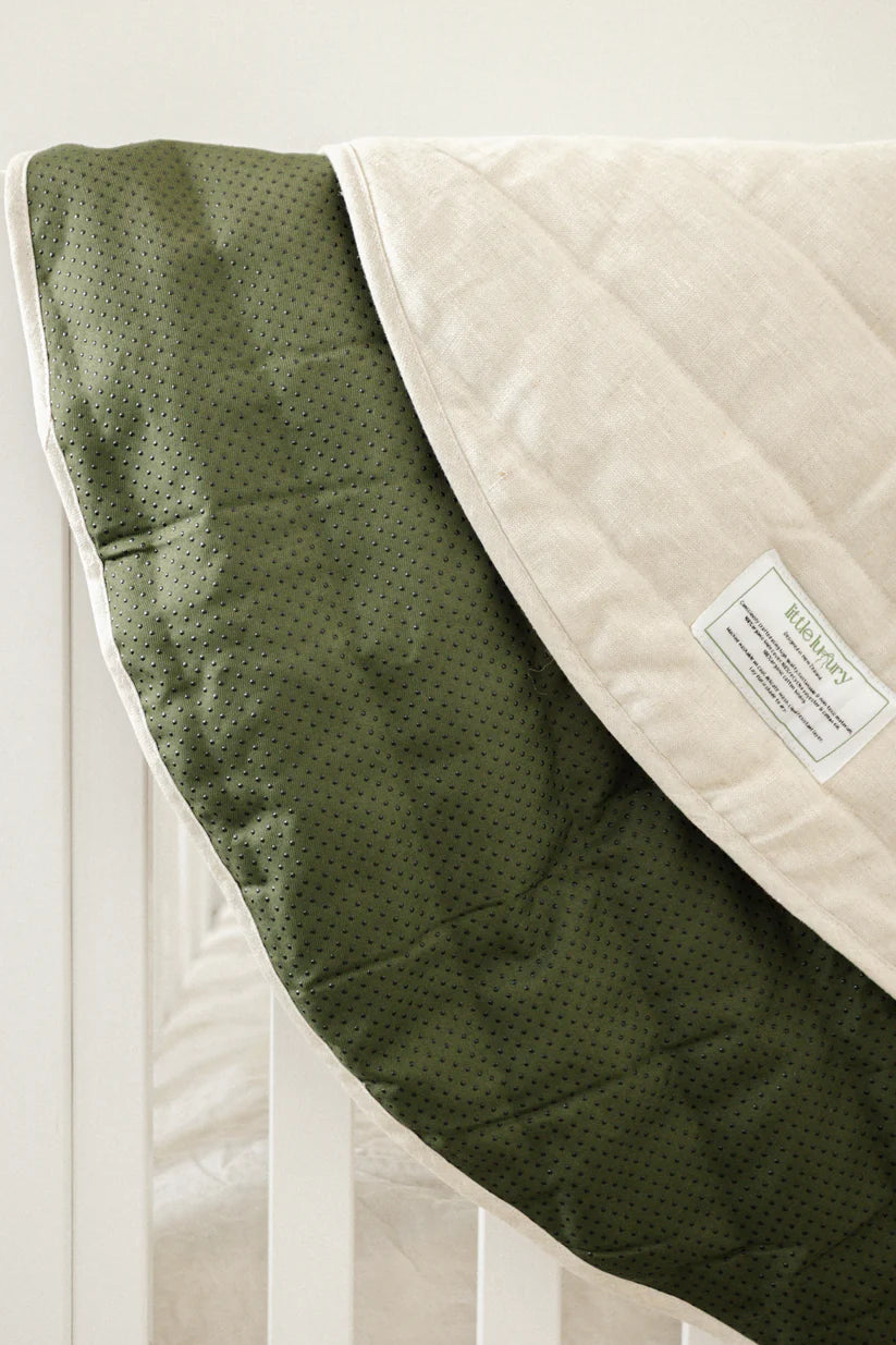 From your living room to the park or beach, enjoy every adventure with grace and ease. The Signature Organic Playmat is designed to nurture your baby’s growth at every stage, combining timeless style with practical use. Its soft, breathable surface invites bonding and play, while the Certified Organic Linen cover offers a gentle, hypoallergenic feel. The deep green, waterproof, non-slip base keeps the mat firmly in place on any surface—wood, tile, grass, or sand—ensuring safety without shifting or bunching. Available in Olive, Melon, and Oat, it’s easy to care for, machine washable, and comes with a stylish embroidered dust bag for storage or travel. Crafted with sustainable materials, this playmat supports your child’s development and a mindful lifestyle.