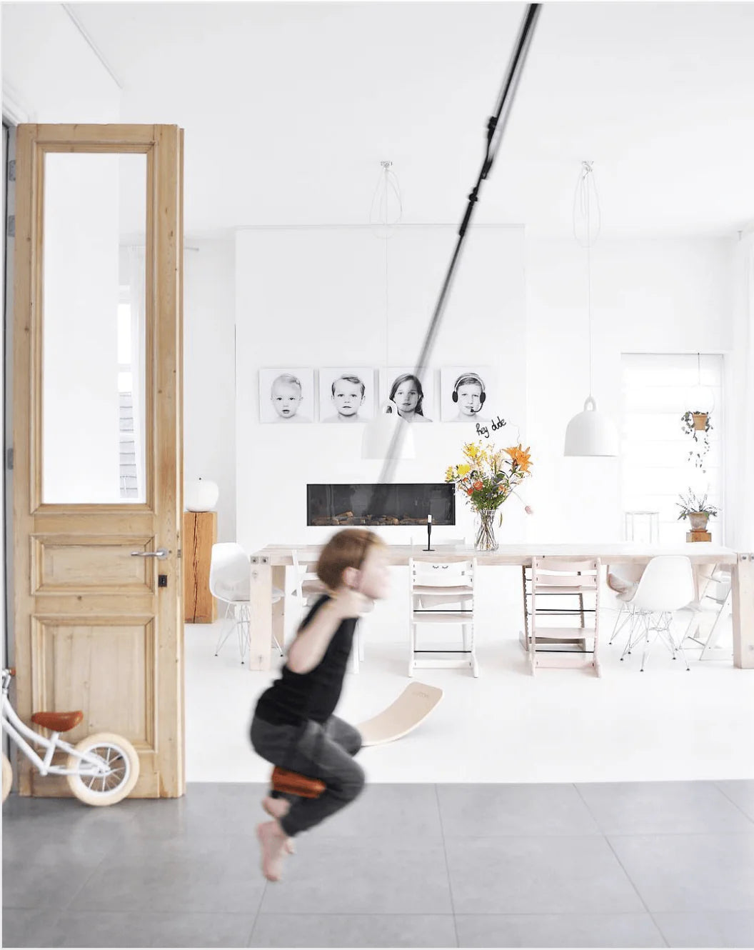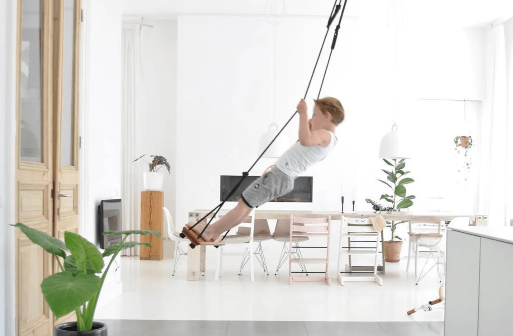 This swing can be hung from up to a height of 3.3 metres.