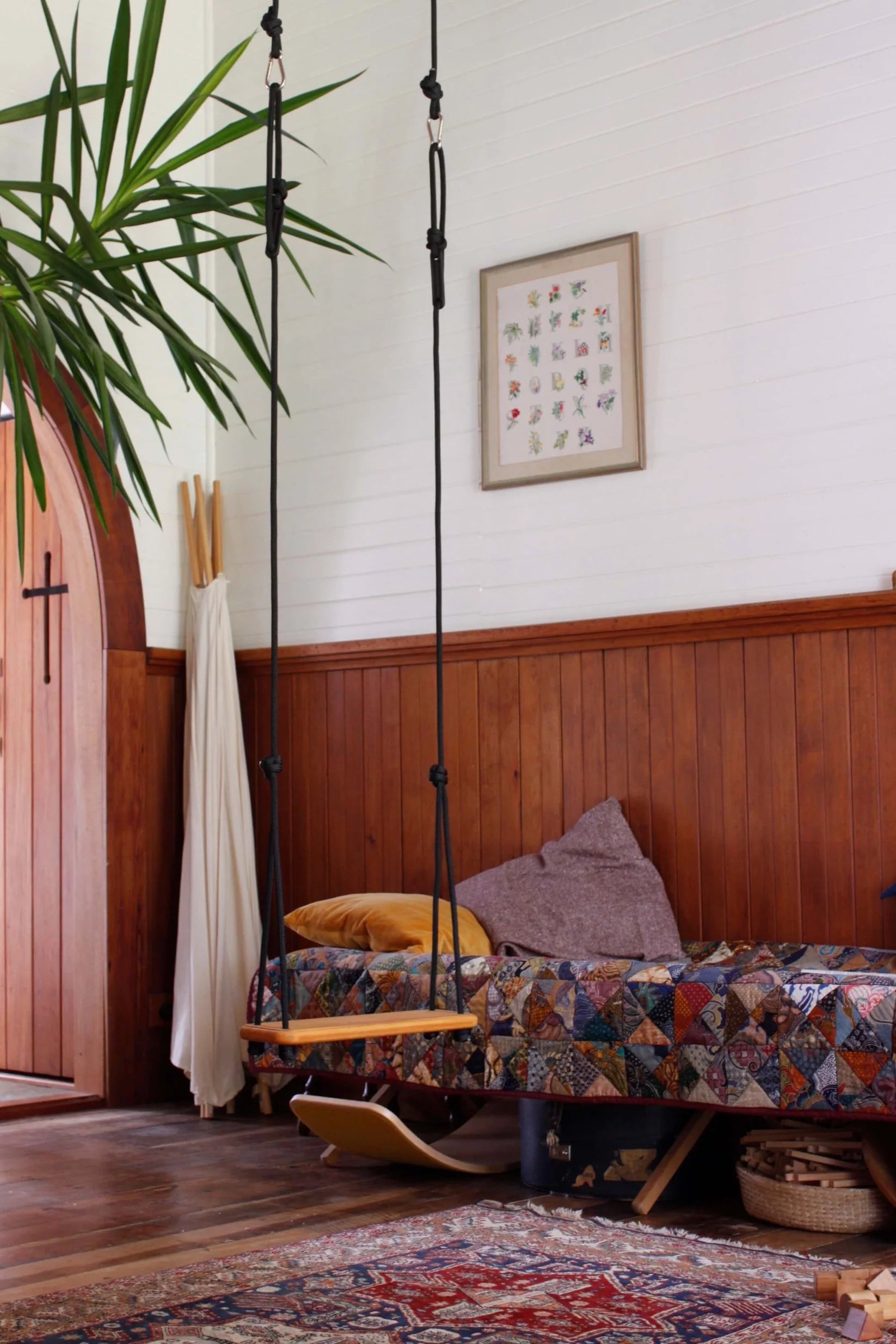 This charming wooden board swing features carefully shaped edges and is designed for those who appreciate a touch of nostalgia. Suitable for both indoor and outdoor use, it is expertly made from FSC-certified, naturally durable wood. Its classic natural style ensures it remains a beloved piece to pass down through generations.