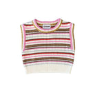 Crafted from 100% organic cotton, this knit top features a crochet-style texture with yarn-dyed stripes. The striped ribbing at the neck and armholes adds a subtle, stylish touch.