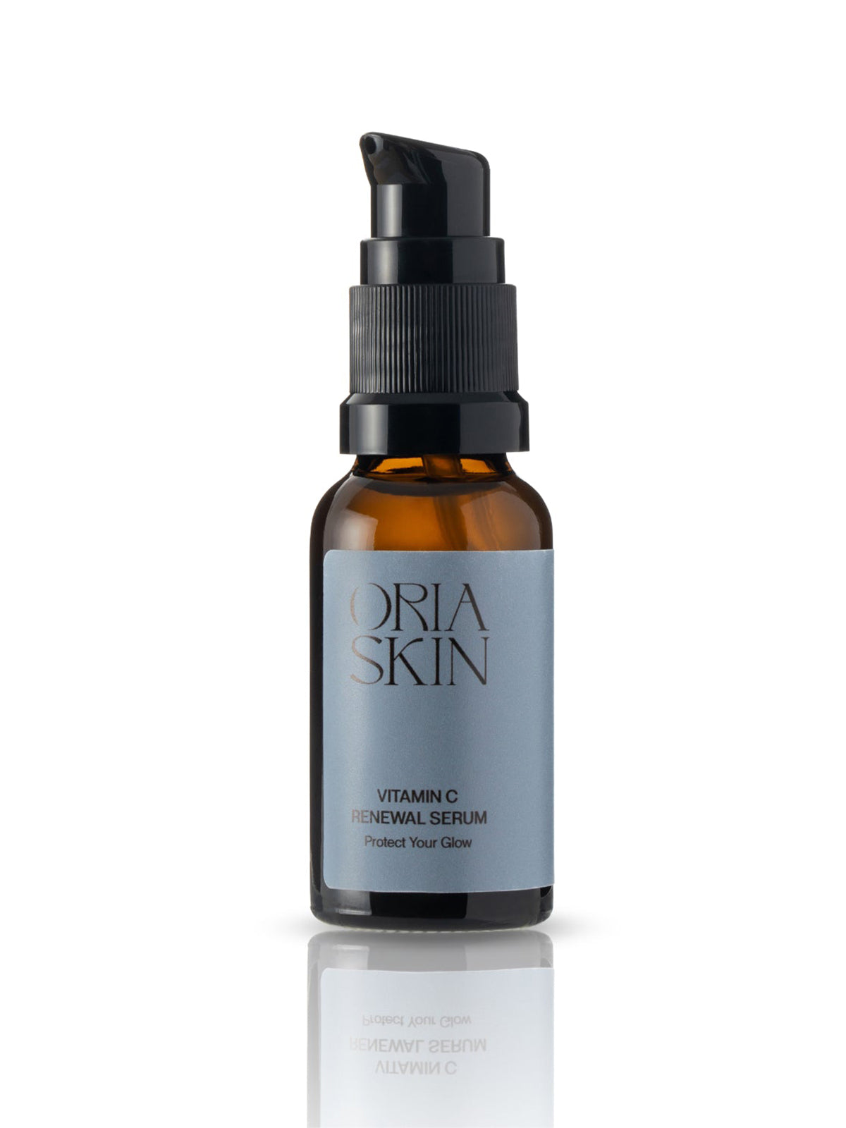 Cleanse your face & apply Vitamin C Renewal Serum to clean skin morning & night. Follow it with an Oria Skin moisturiser or oil.
