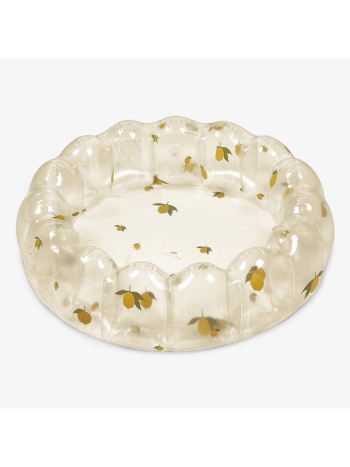 Small transparent inflatable pool made from durable PVC. Designed with scallop endings.