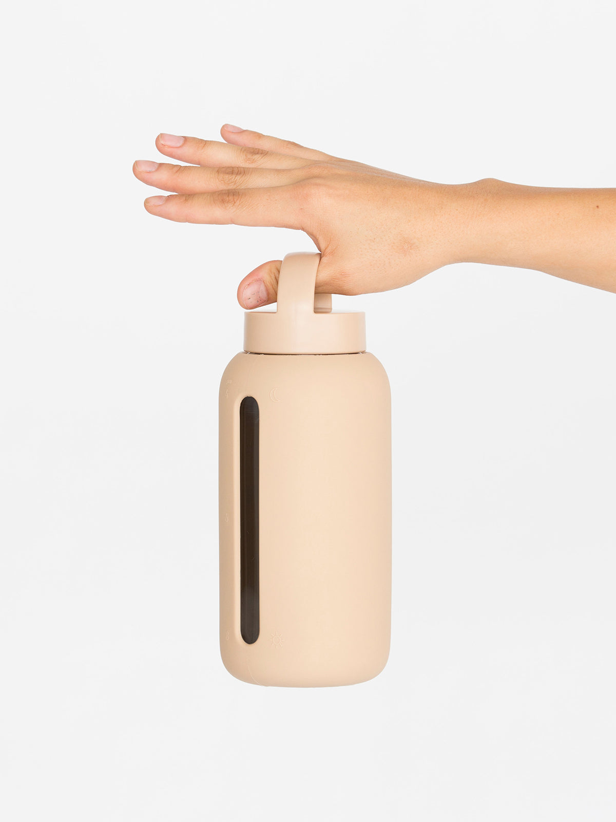 A simple glass water bottle with hydration tracking designed to help you meet your daily recommended water needs. Because your health is your greatest asset, and drinking enough water should never feel abstract or unattainable.