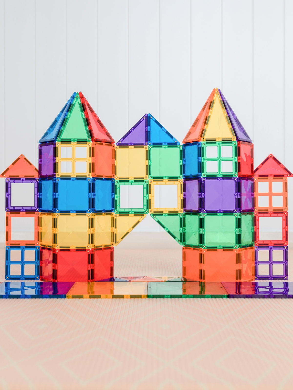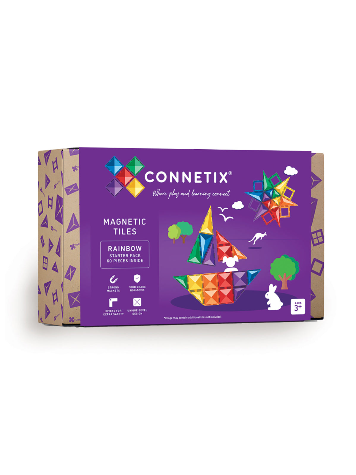 Featuring large and small squares, plus three types of triangles in six vibrant rainbow colours, this pack is the perfect introduction to Connetix play or as an addition to growing magnetic tile collections.