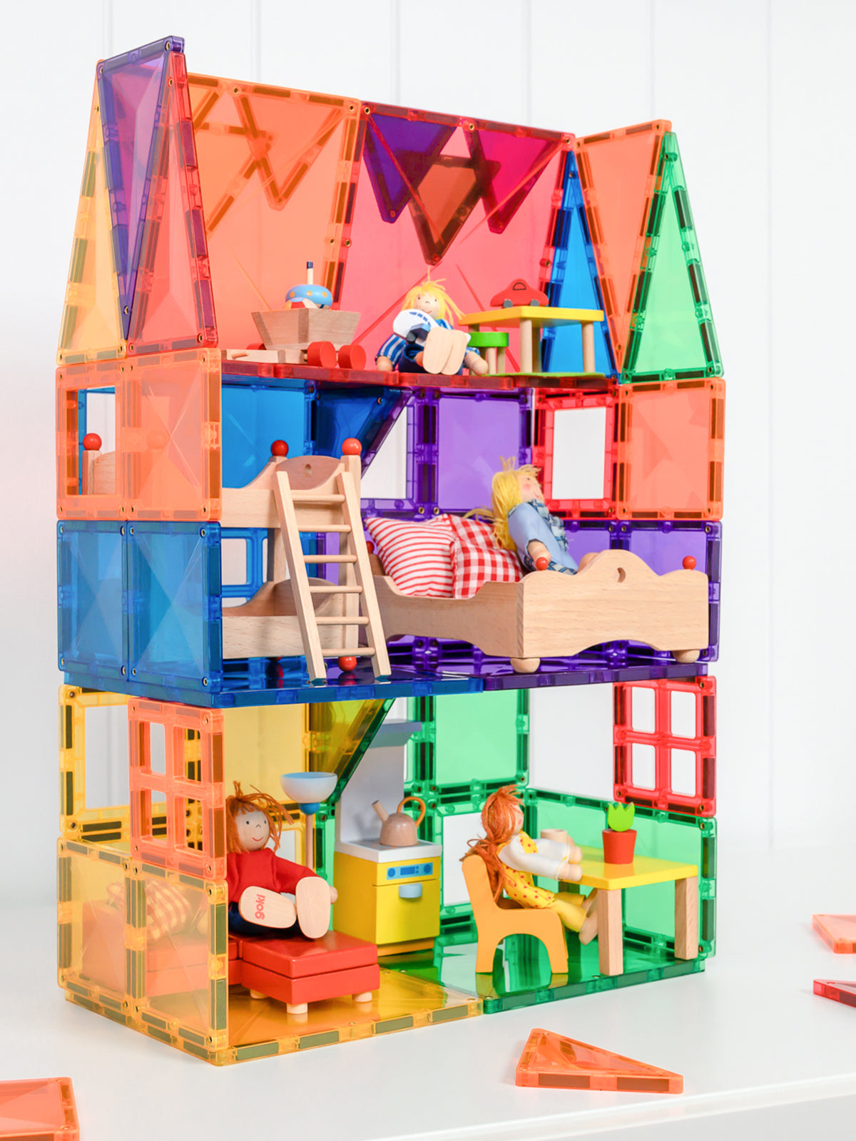 Designed to foster imagination and encourage children to explore STEAM learning through PLAY, this pack will inspire children to create 2D and 3D designs such as houses, castles, farms, zoos, car parks, rockets, towers, puzzles, sorting boxes and coin drops, plus so much more! Watch as they explore concepts of magnetism, design, shape, patterns, engineering, mathematics and colours while developing fine motor and problem-solving skills.