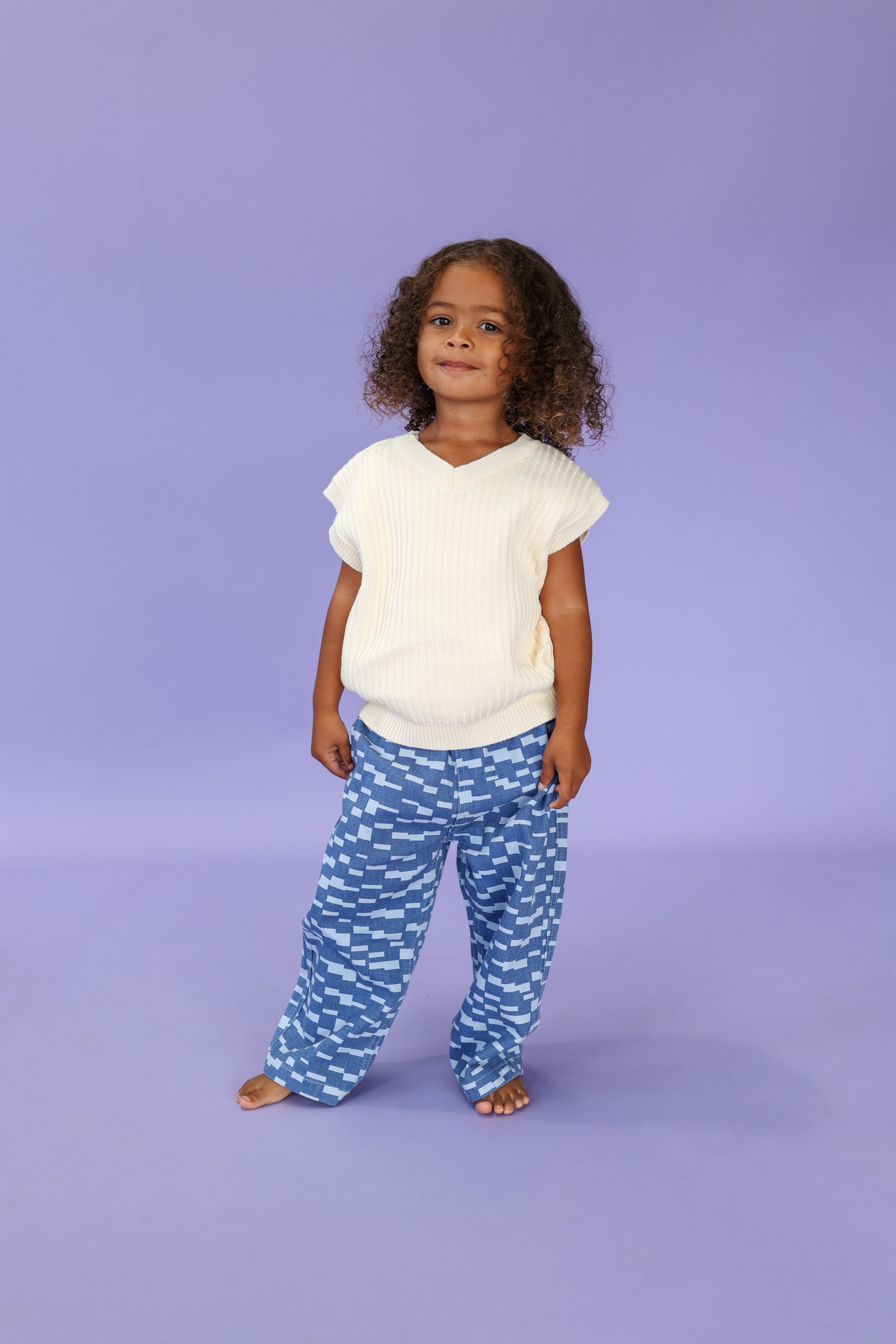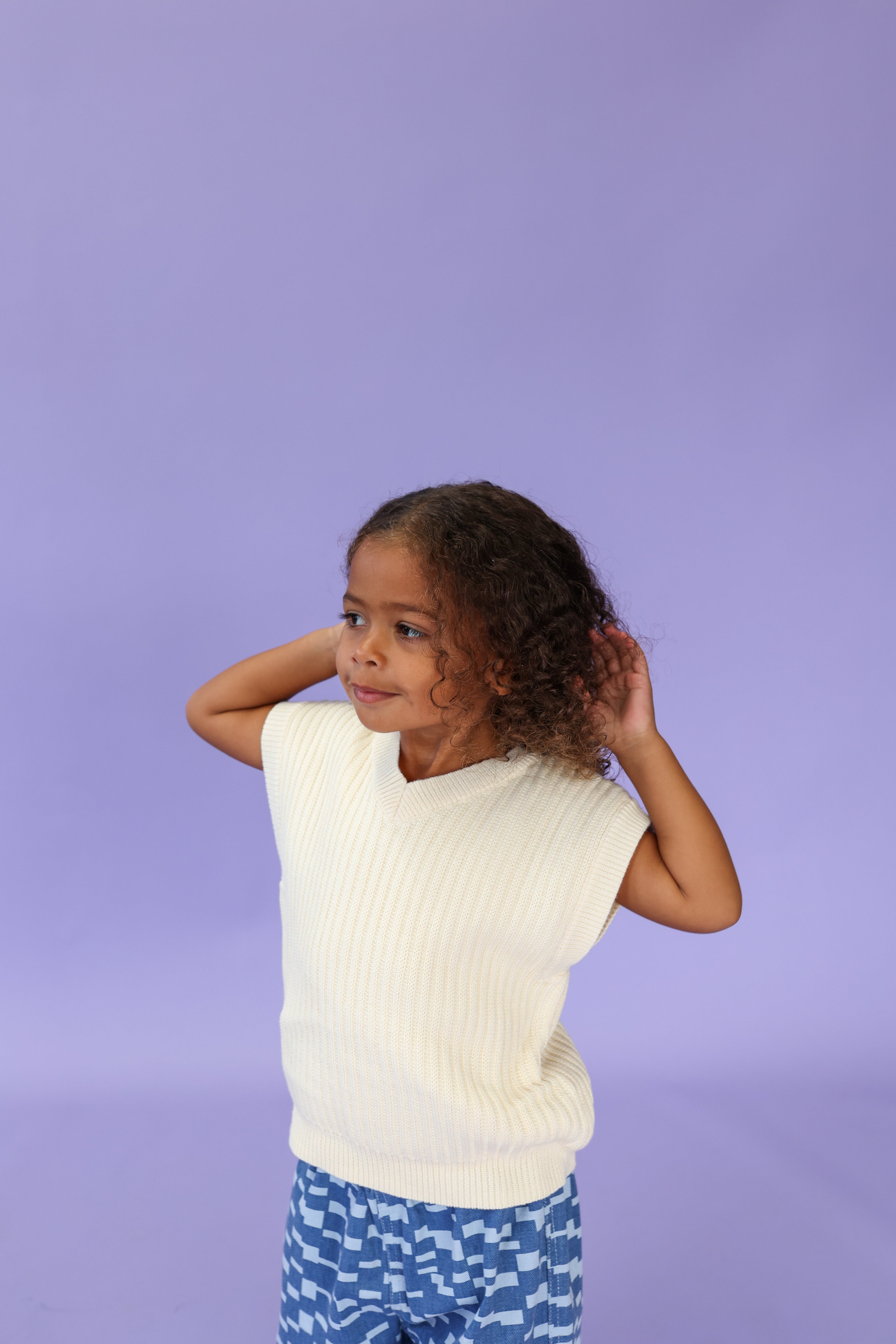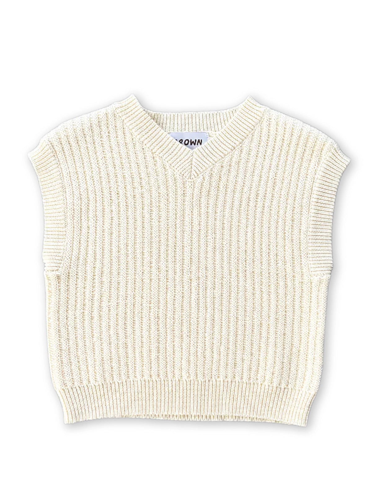 This vest features a chunky rib knit throughout with a V-neck design. It offers an oversized, relaxed fit for comfort, and is finished with ribbed edges at the hem, neckline, and armholes for a polished look.