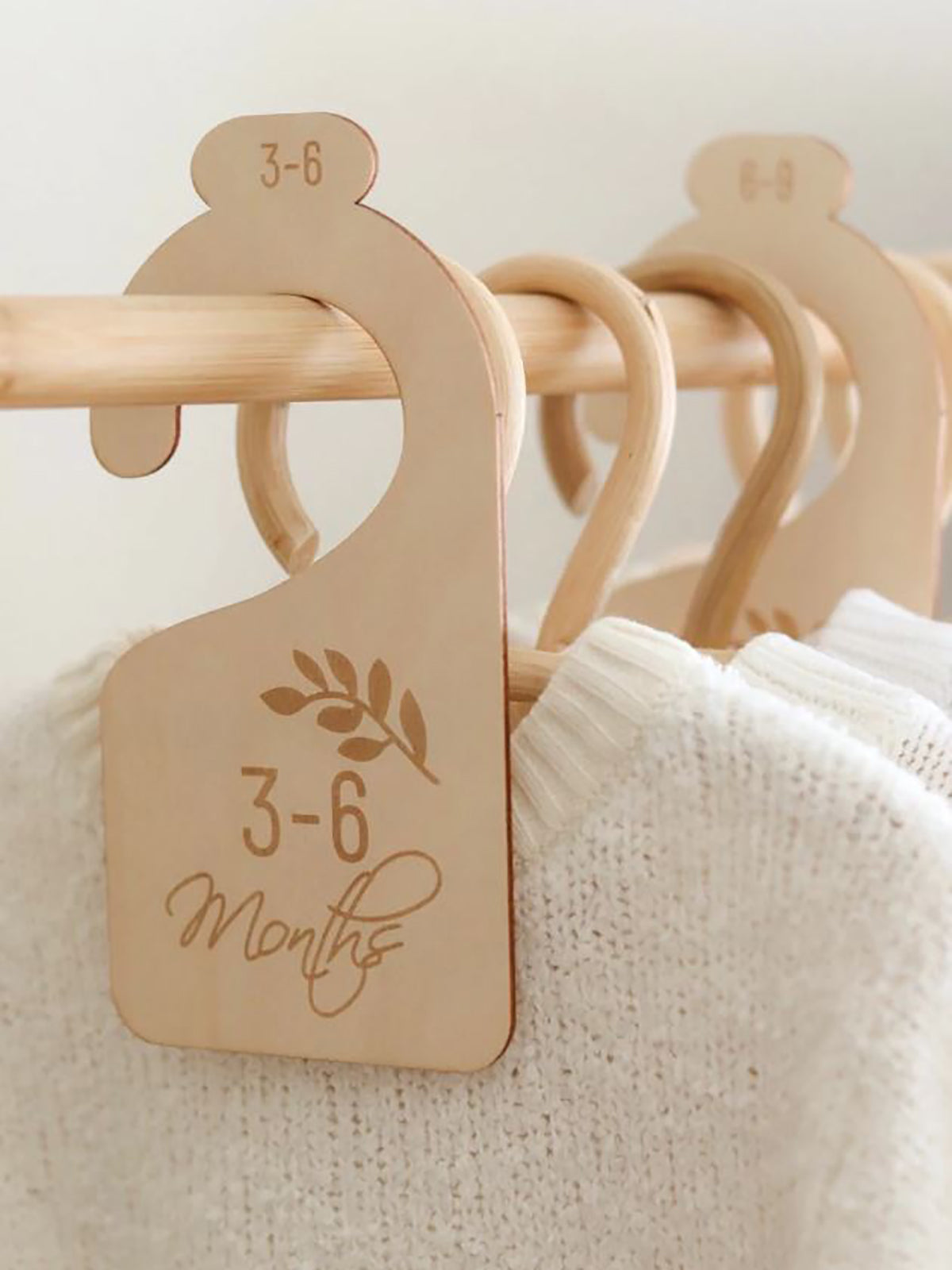 Simplify your growing little ones wardrobe by organising their clothes from newborn right through to 2 years, with our unique laser engraved wooden wardrobe dividers.