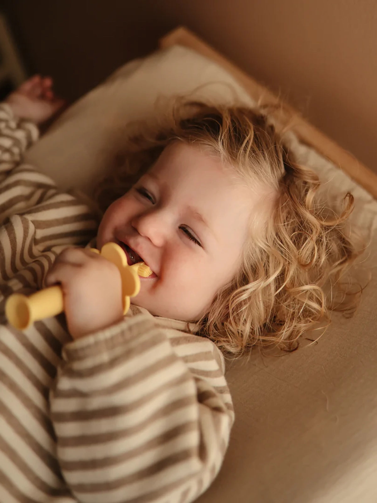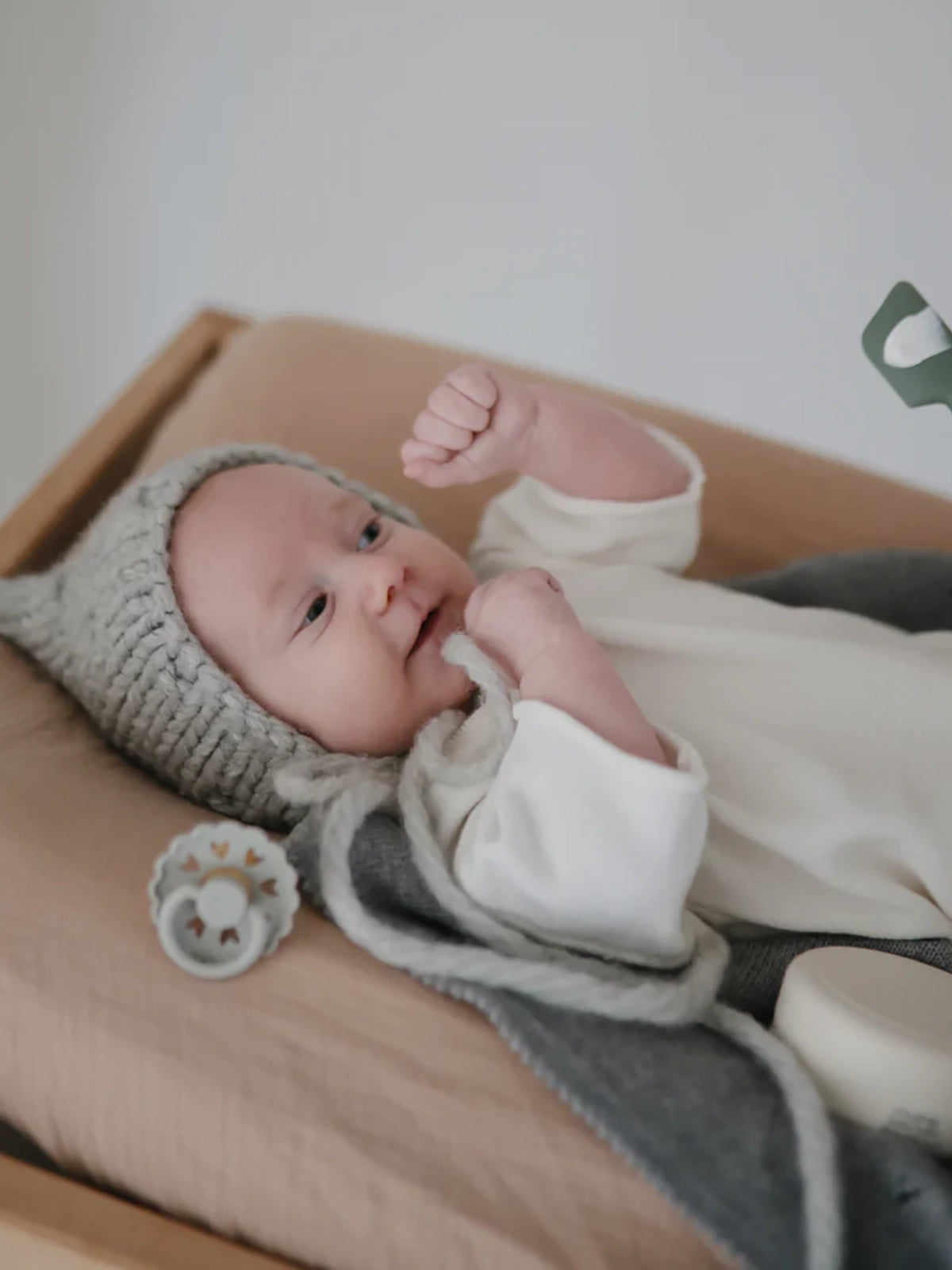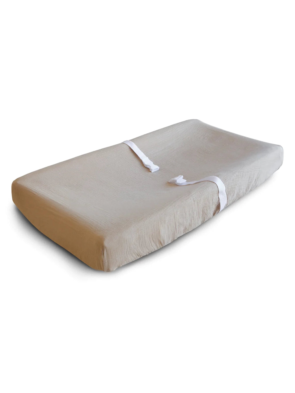 Mushie's soft muslin changing pad cover is soft on your baby's skin.