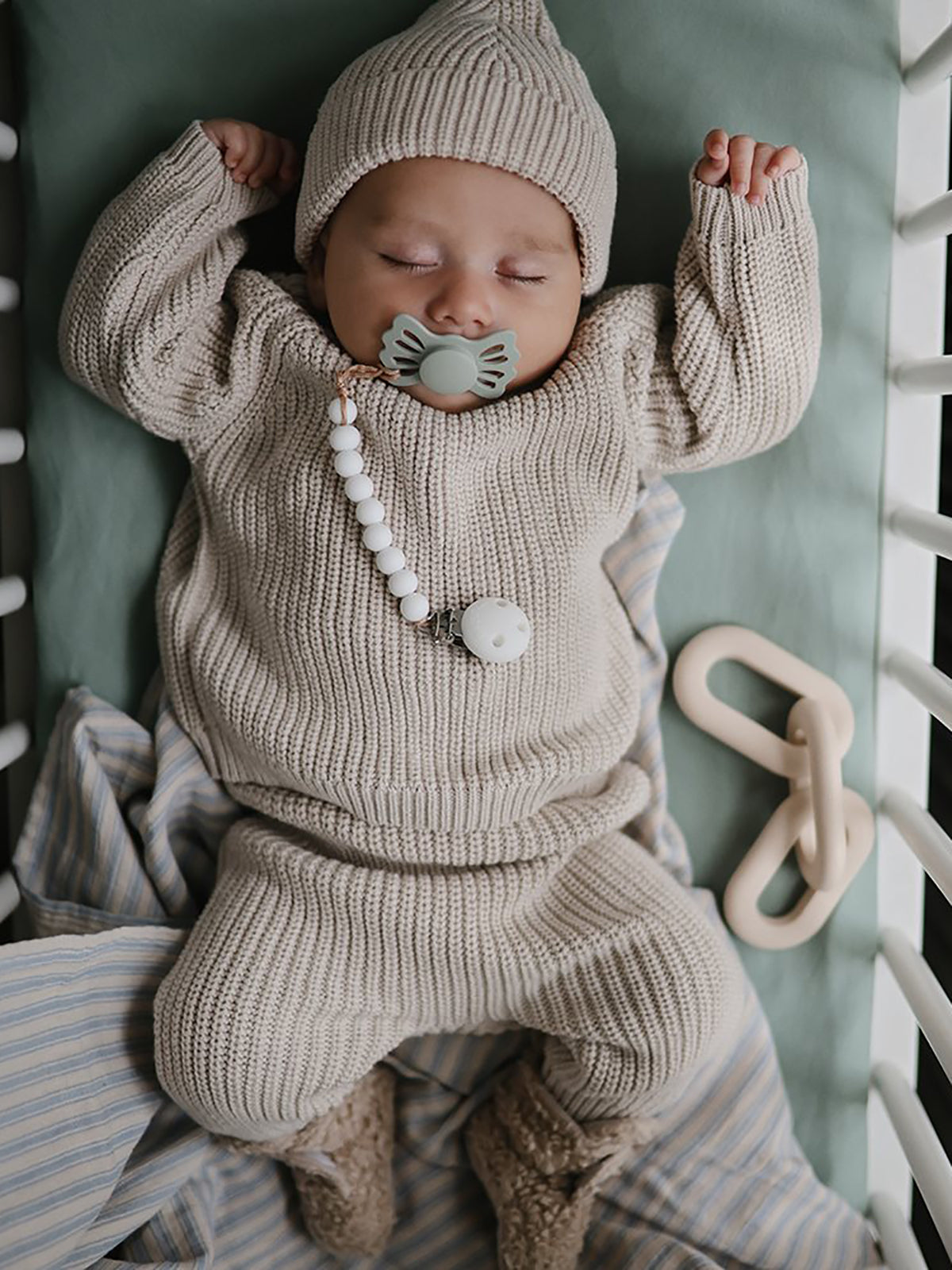 Made with organic cotton, our Chunky Knit Sweater was designed to keep baby warm. Intentionally oversized for comfort and style, pairs well with our Chunky Knit Pants and Chunky Knit Beanie for a complete, cozy look.