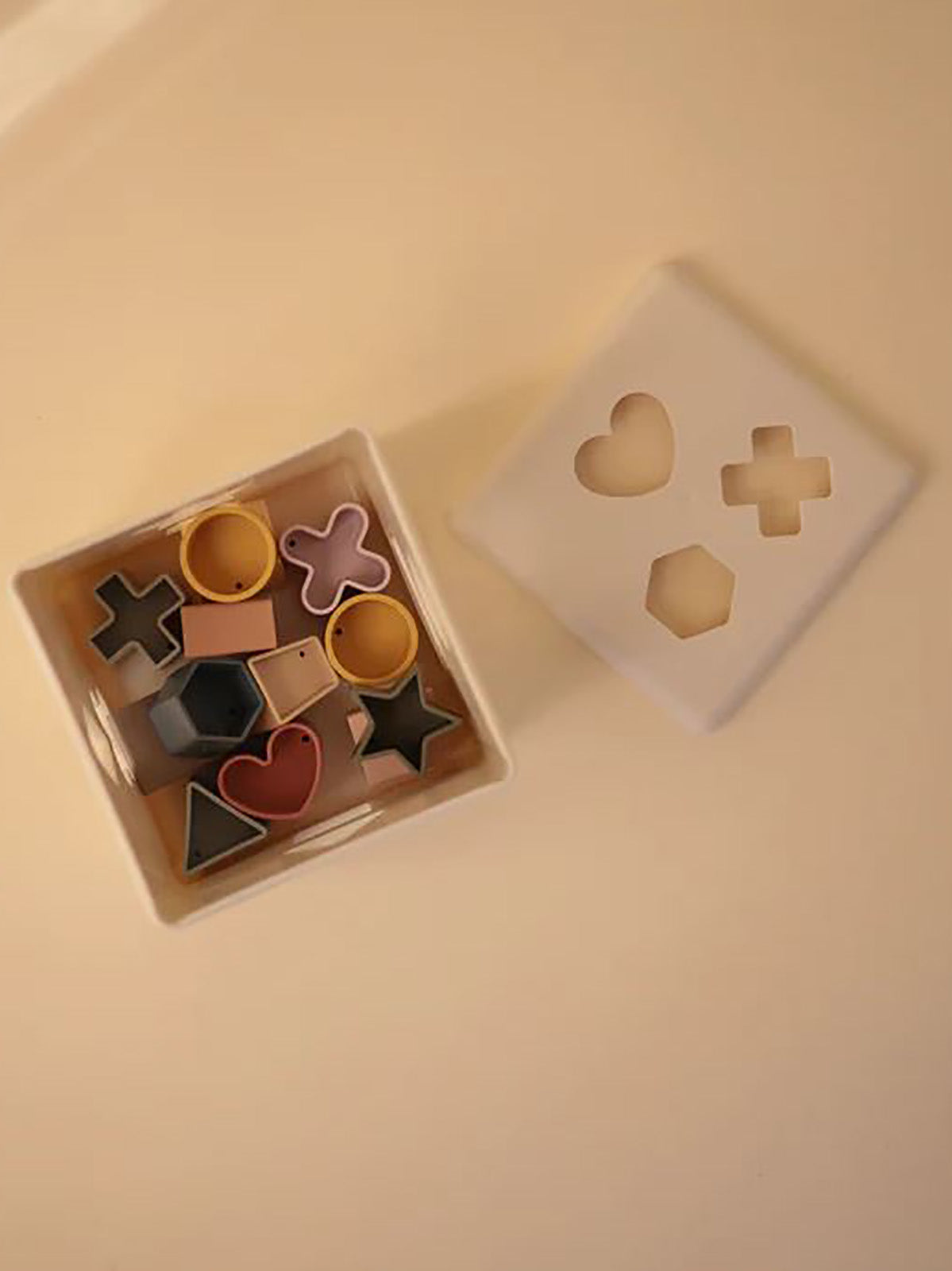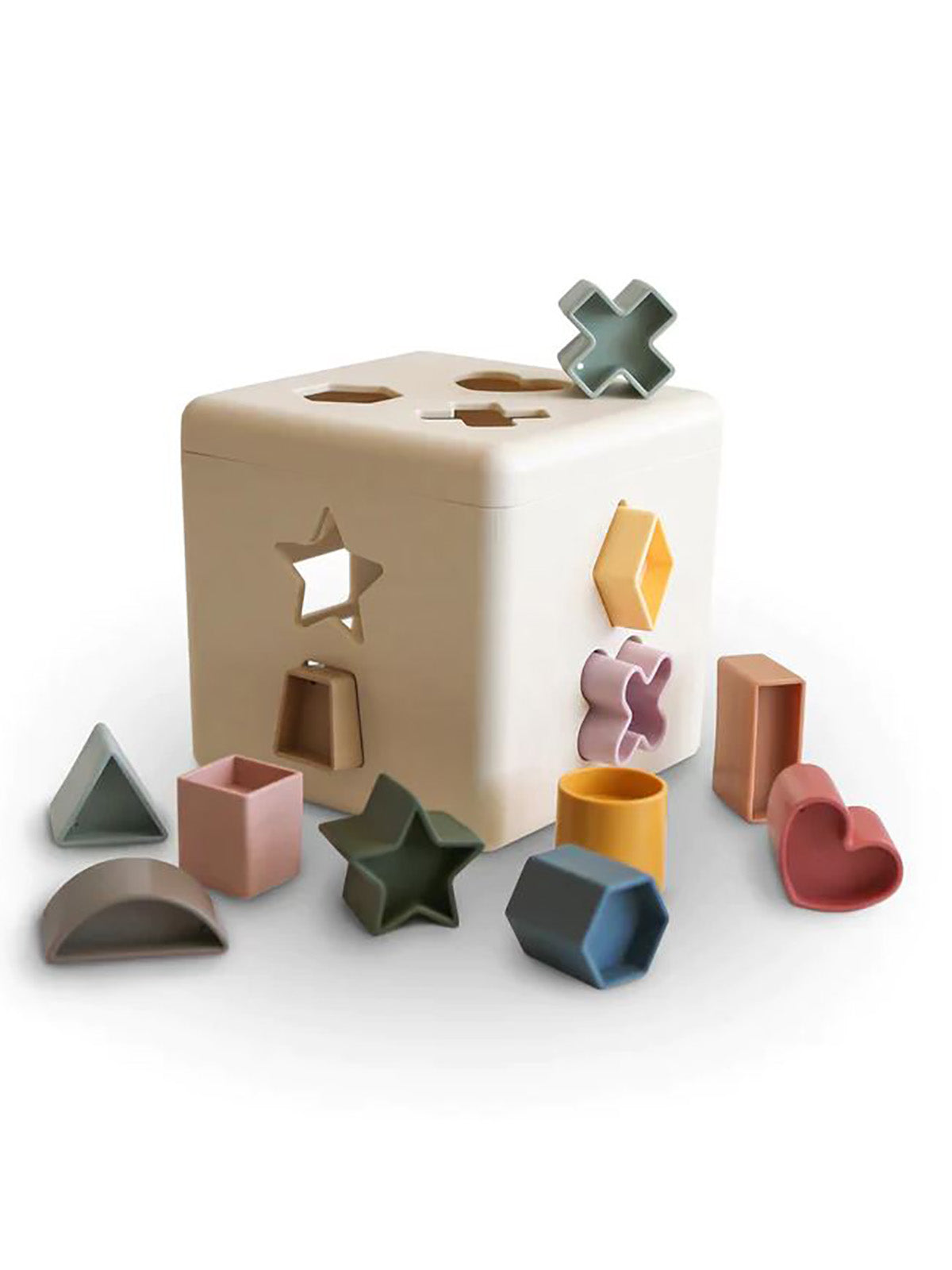 The Mushie shape sorting box is made in Denmark and sets the stage for highly engaged play with endless opportunities for hands-on-learning. Featuring 12 shapes in soft colors, children will expand their fine motor skills as they match shapes to their paired cutouts.