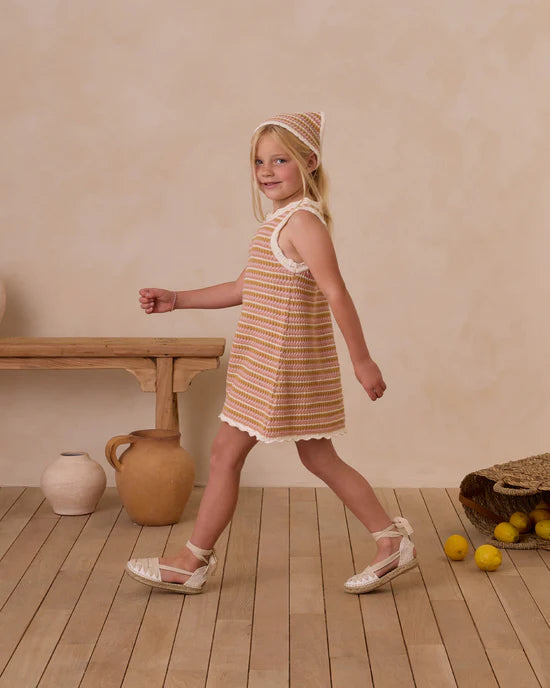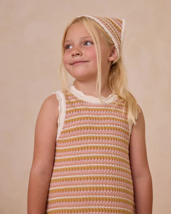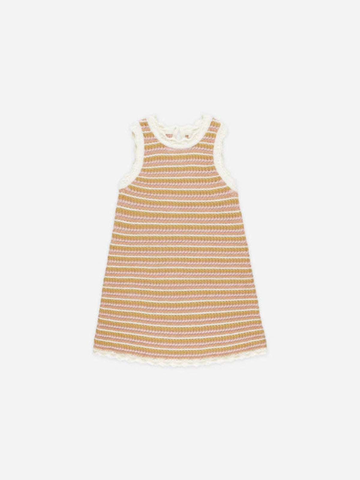 This delightful a-line tank mini dress will become your child's summer essential! The charming pink stripe pattern adds a playful touch to the beautiful crochet design. Perfect for creating wonderful memories during those warm, sunny days.