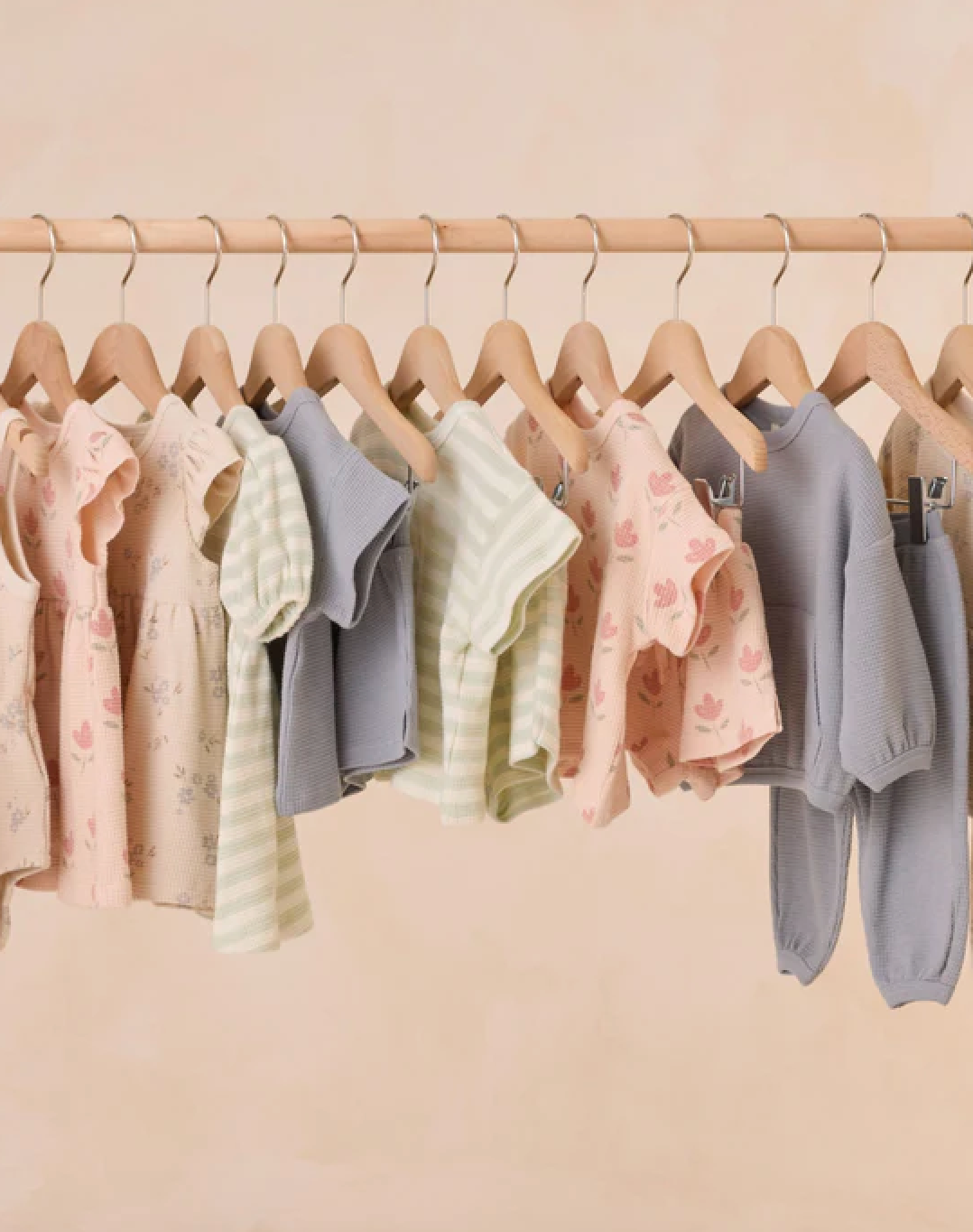 Quincy Mae's Waffle Slouch Set includes a long sleeve top with a large front pocket and matching pants. Perfect for lounging around the house or outdoor play.