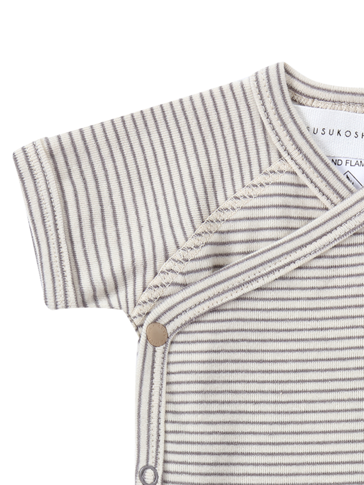 Features snap buttons made for easy changing but don't necessarily have to be opened when putting it on wriggly toddlers. Susukoshi basics are well designed for comfort and everyday wear.