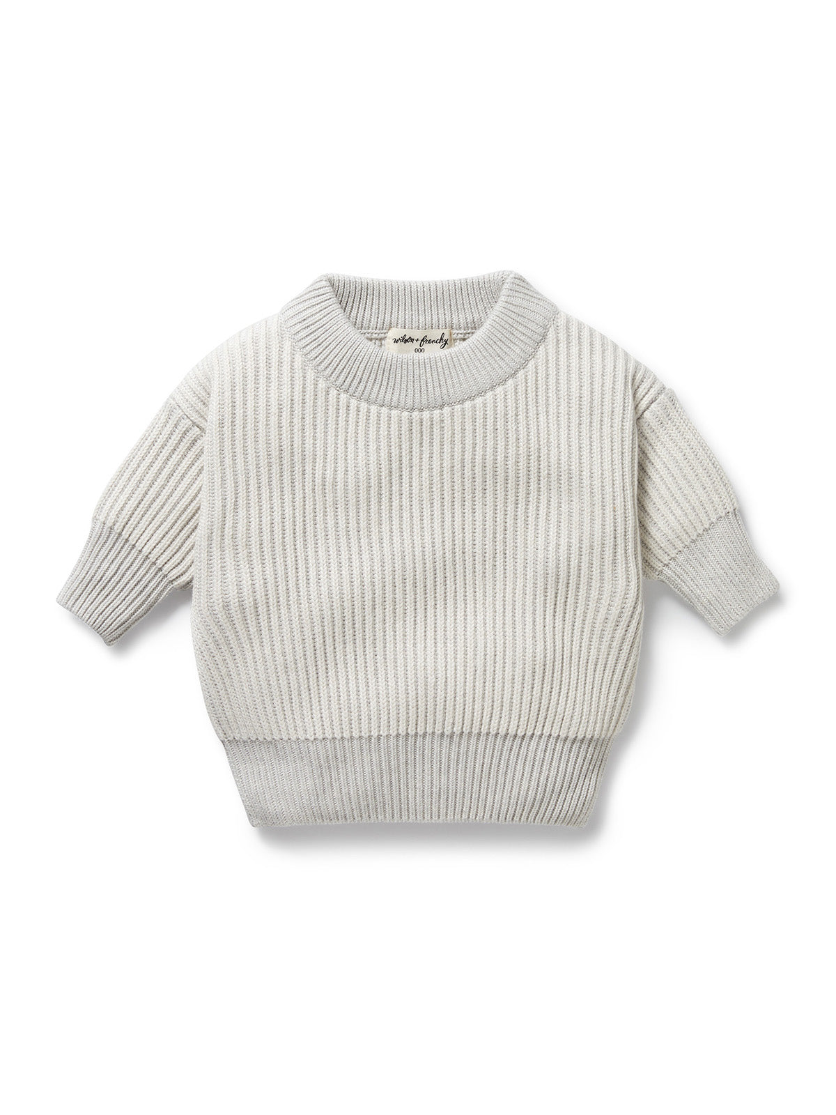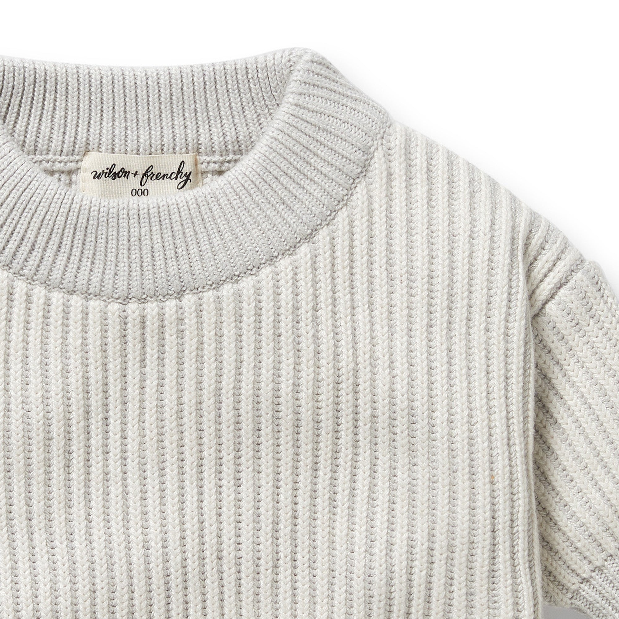 WILSON & FRENCHY Organic Knitted Ribbed Jumper - Grey Melange and Oatmeal
