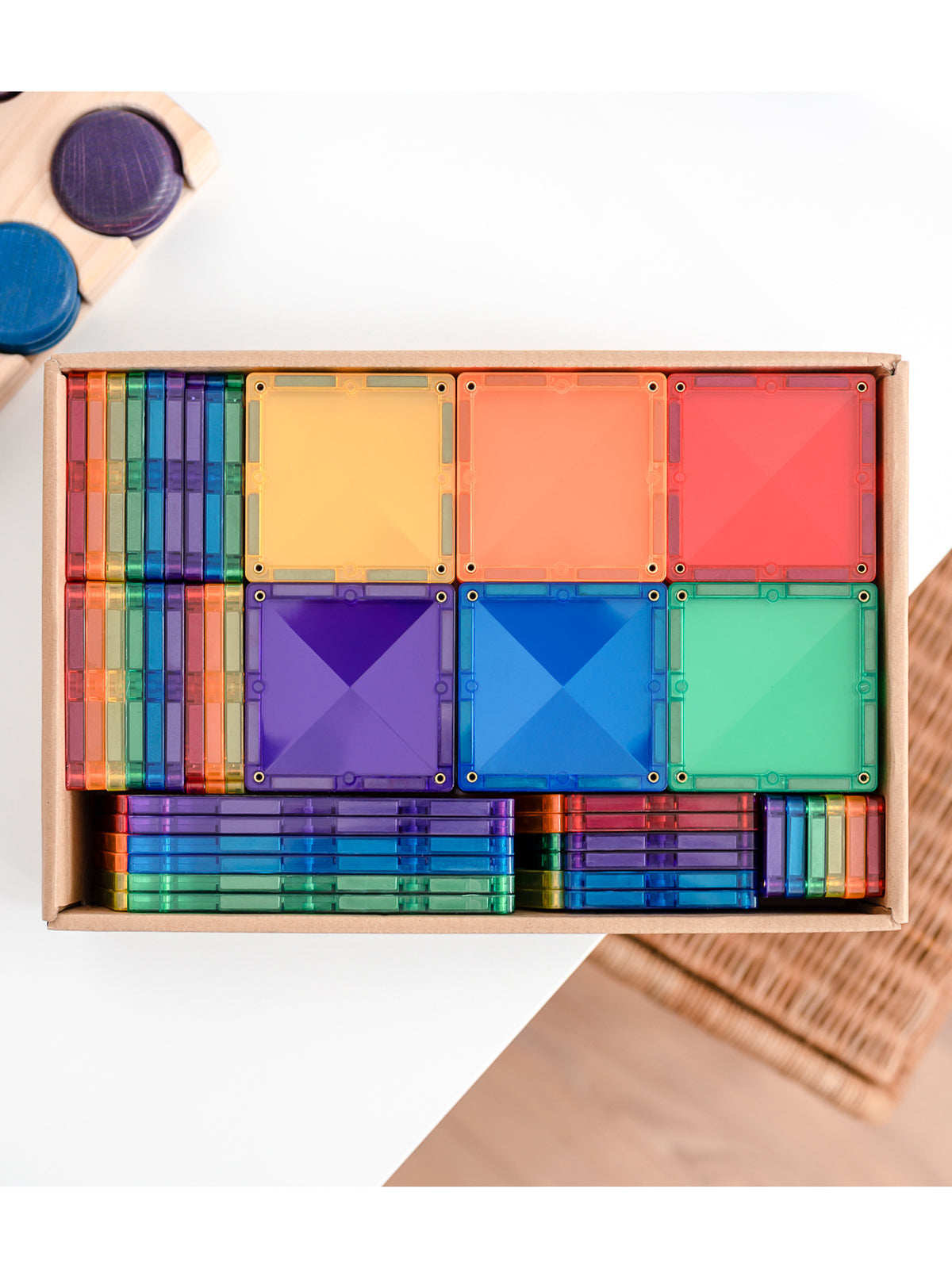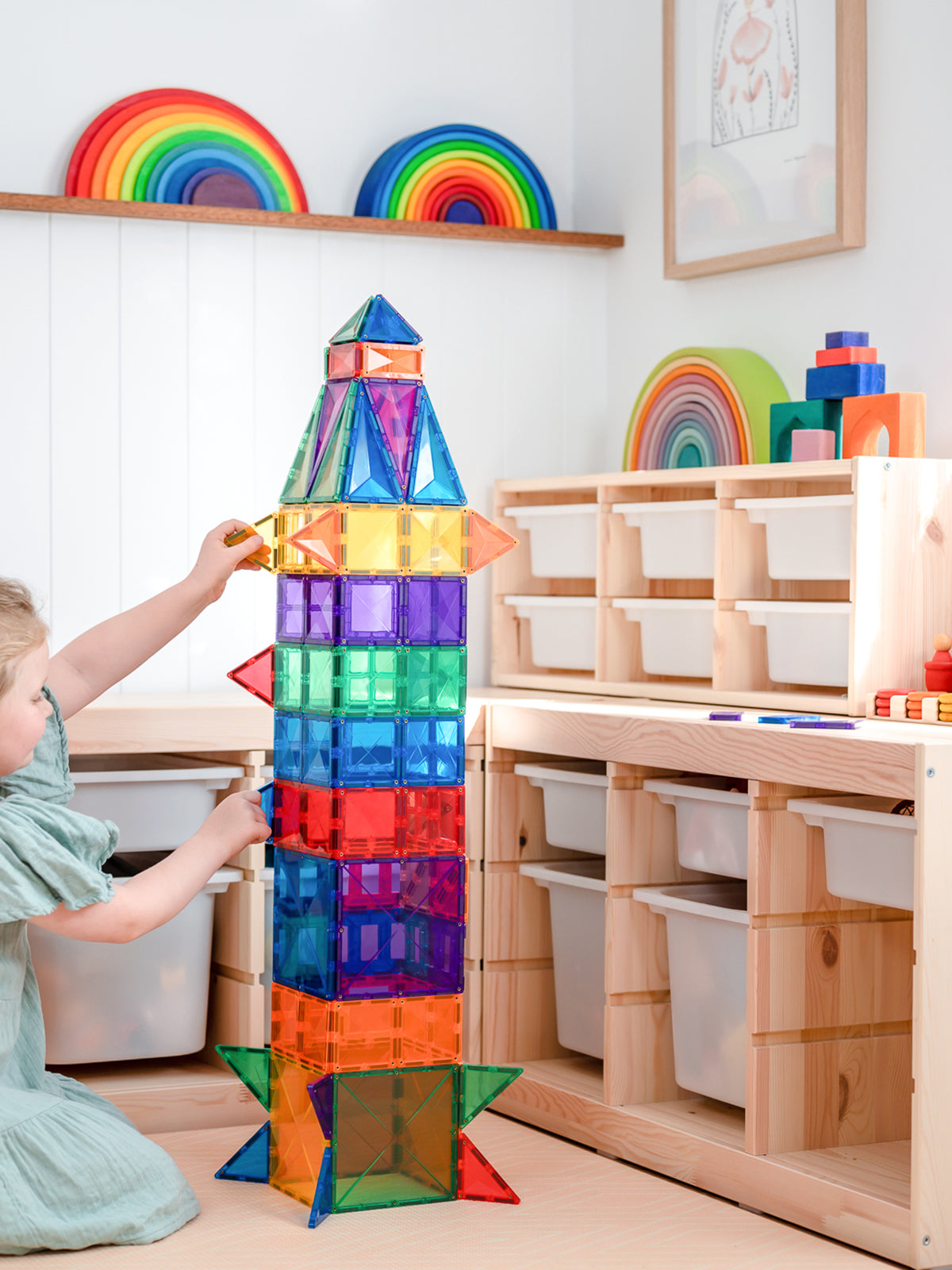 As a high-quality, open-ended toy, Connetix will grow WITH your child as they learn and their play becomes more complex. Expand your collection and explore the Connetix range of colours with the 64 Piece Pastel Starter Pack or take your magnetic tile play fun to the next level with the unique 92 Piece Rainbow Ball Run Pack!