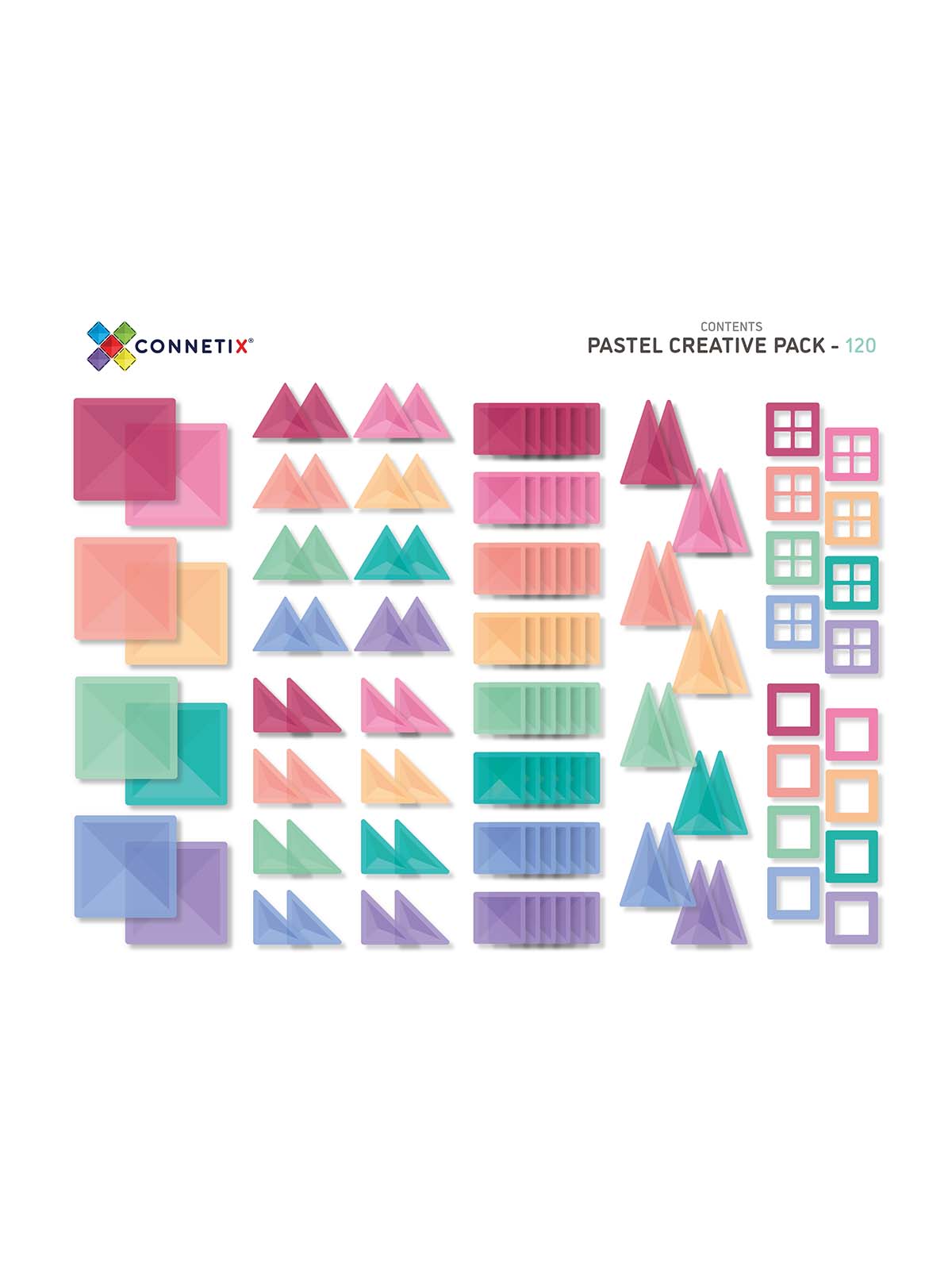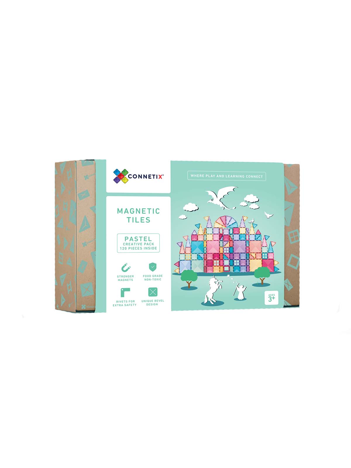 Designed to encourage hours of limitless creativity, fun and learning through PLAY, the Pastel Creative Pack features a variety of shapes in 8 pastel colours. It is a great starter option for family play, building BIGGER Connetix creations and expanding the range of colours your children recognise!