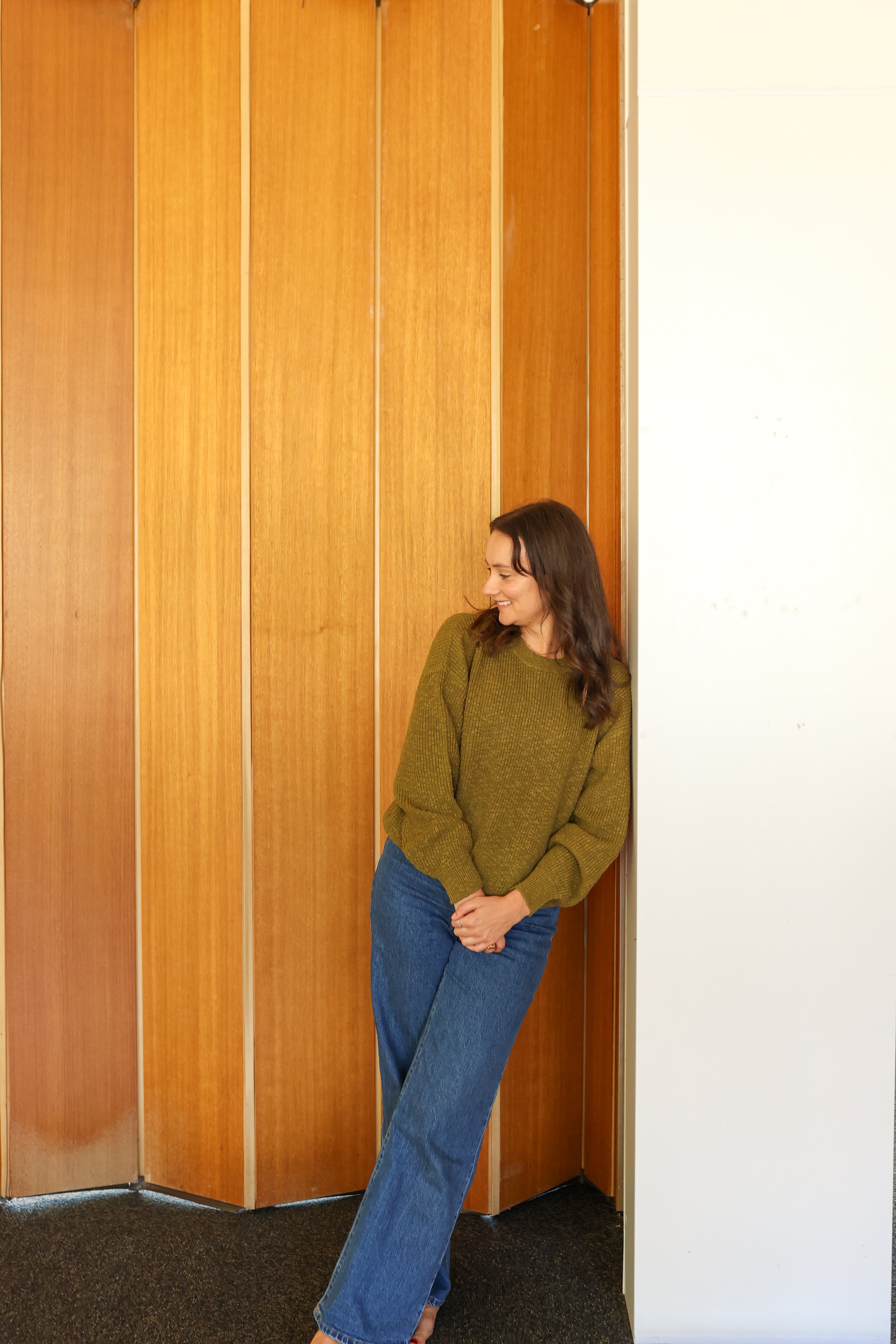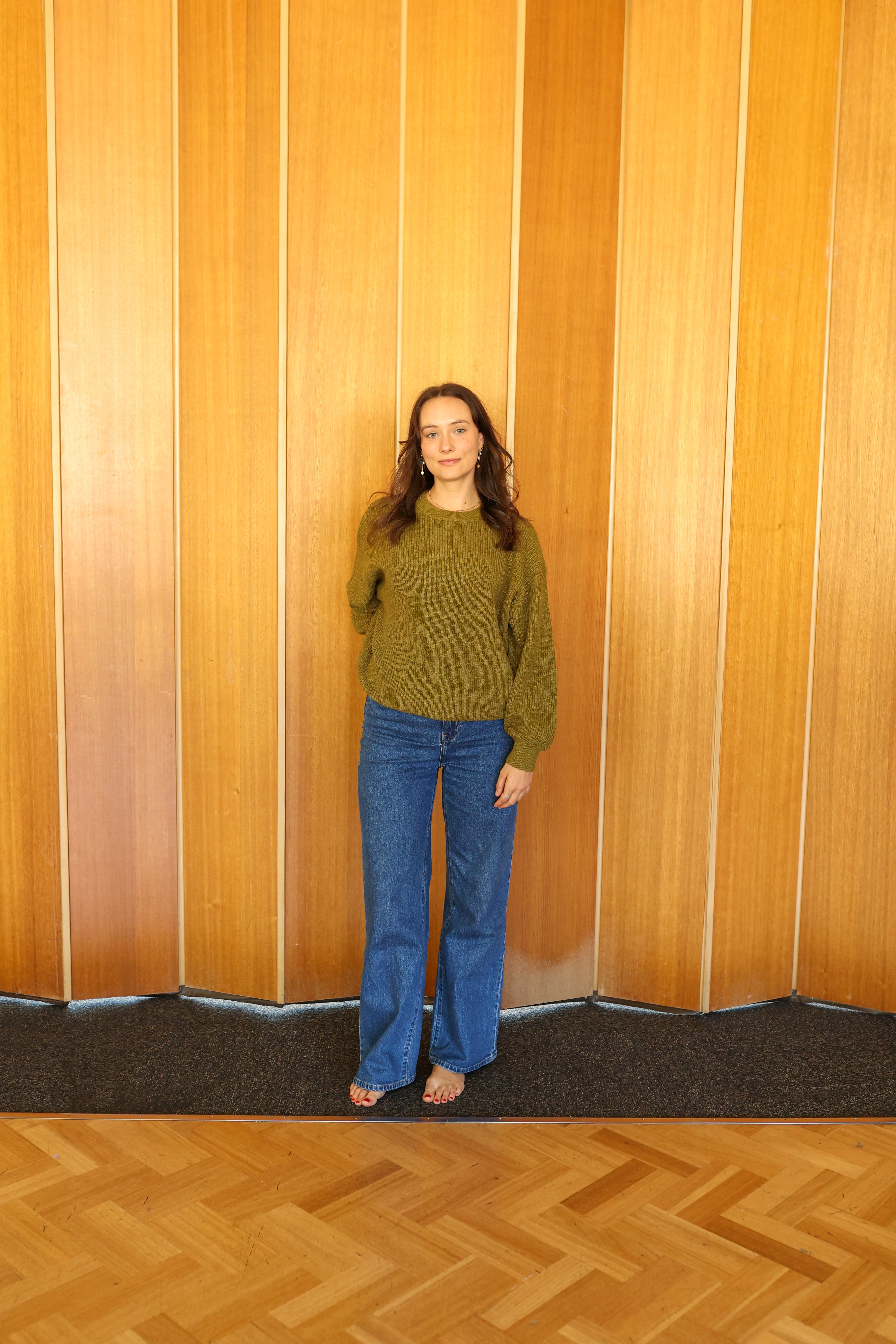 GROWN Ladies Oversized Chunky Rib Pull Over - Herb
