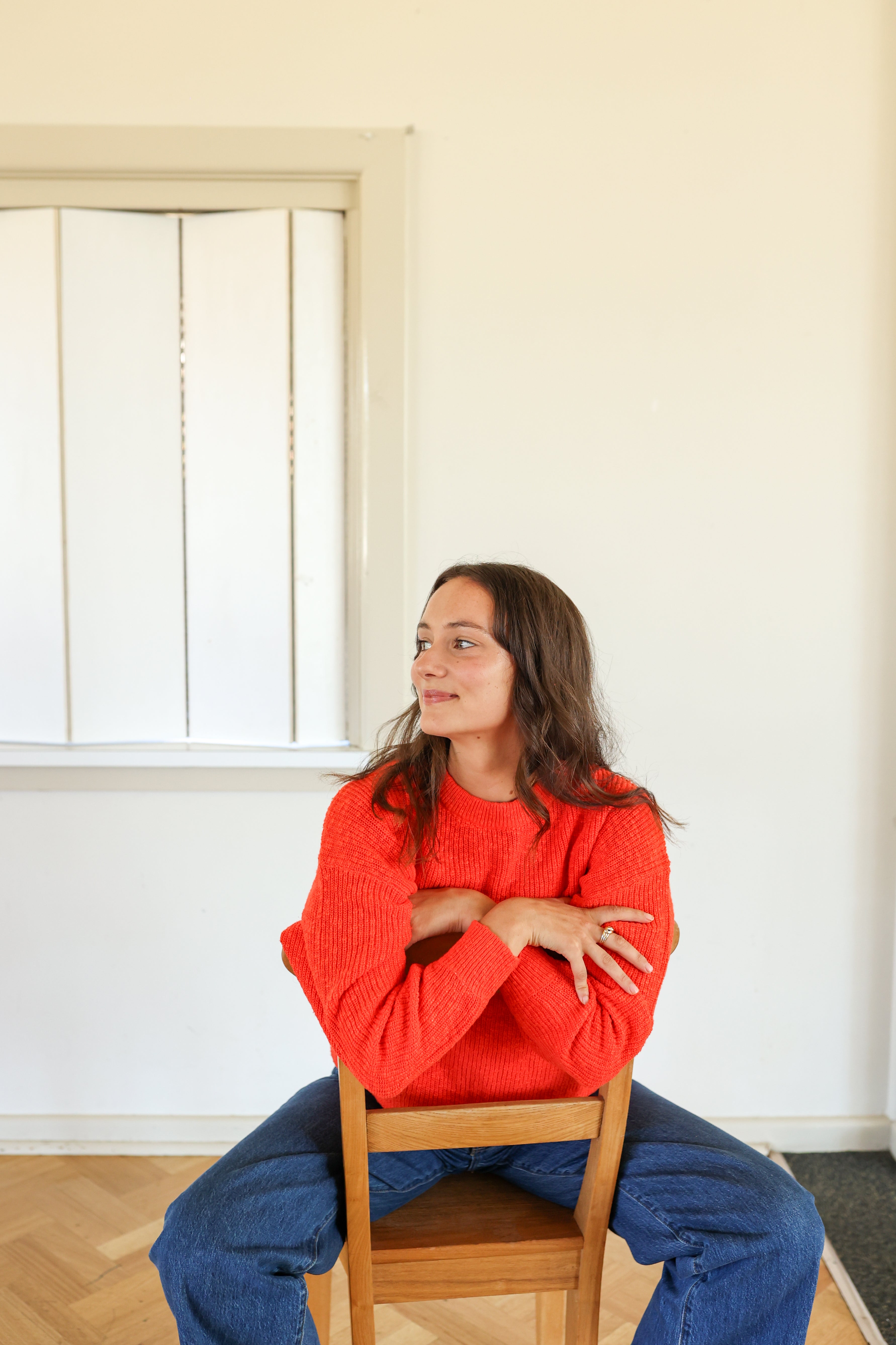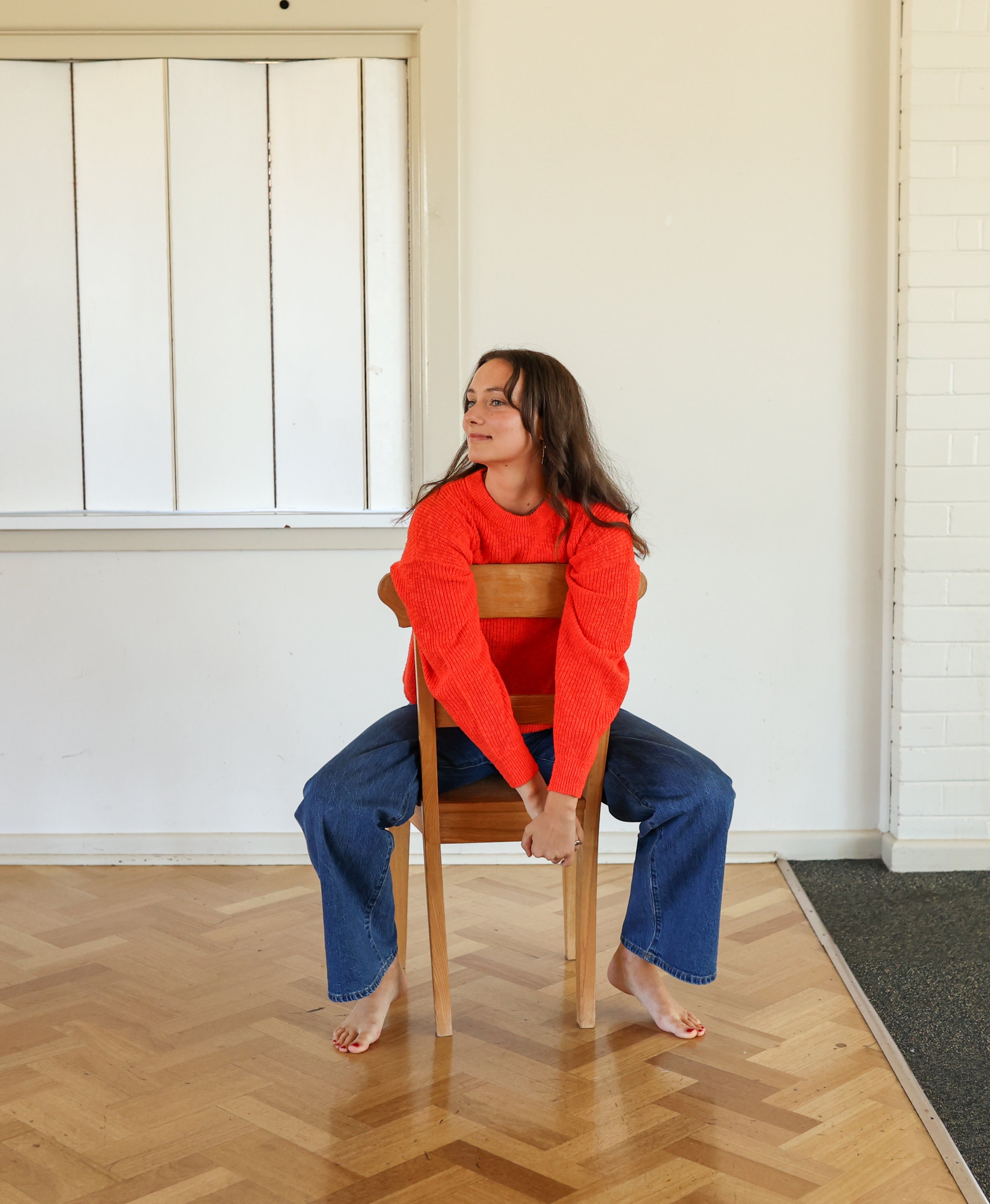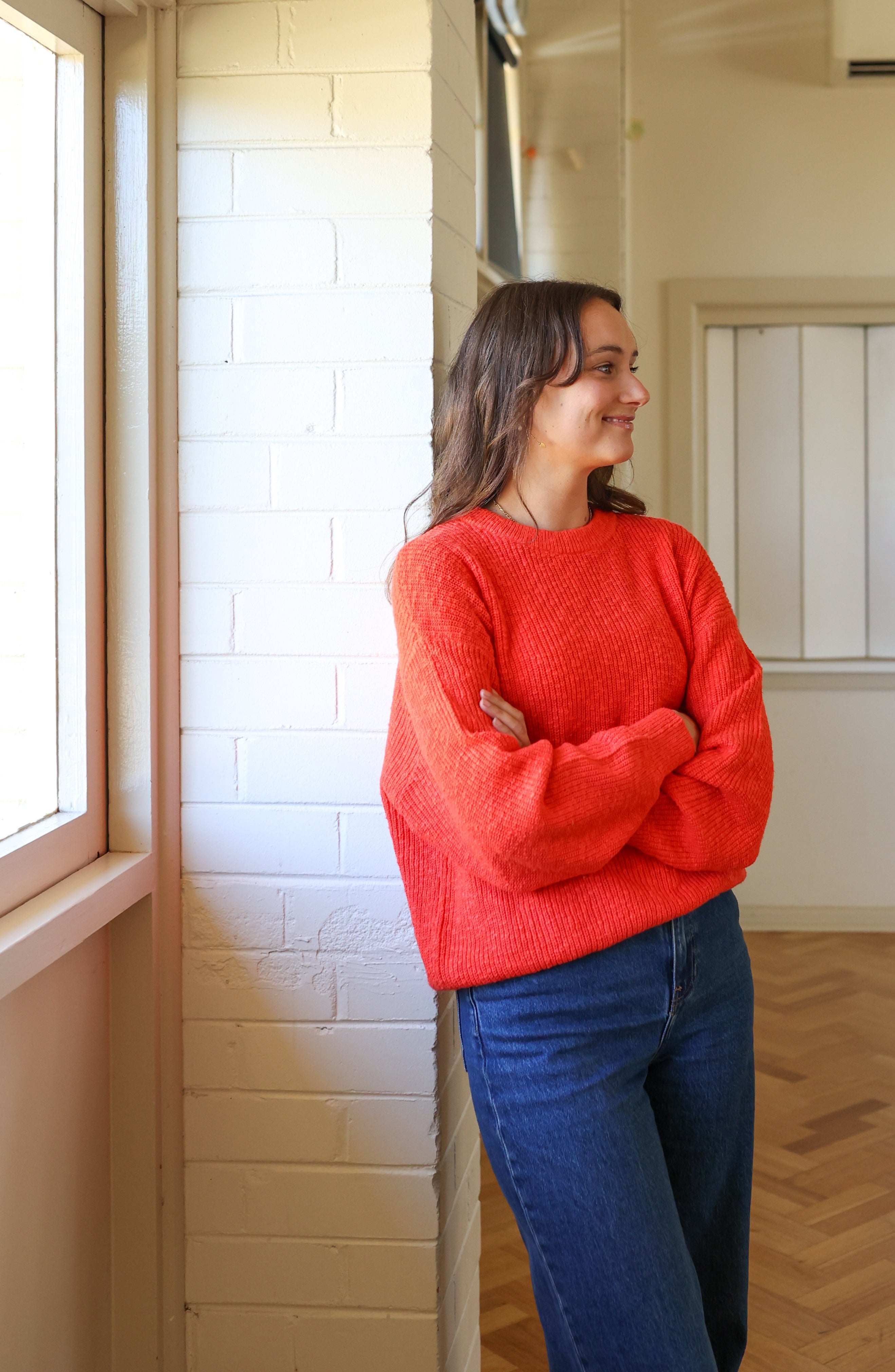 GROWN Ladies Oversized Chunky Rib Pull Over - Tomato