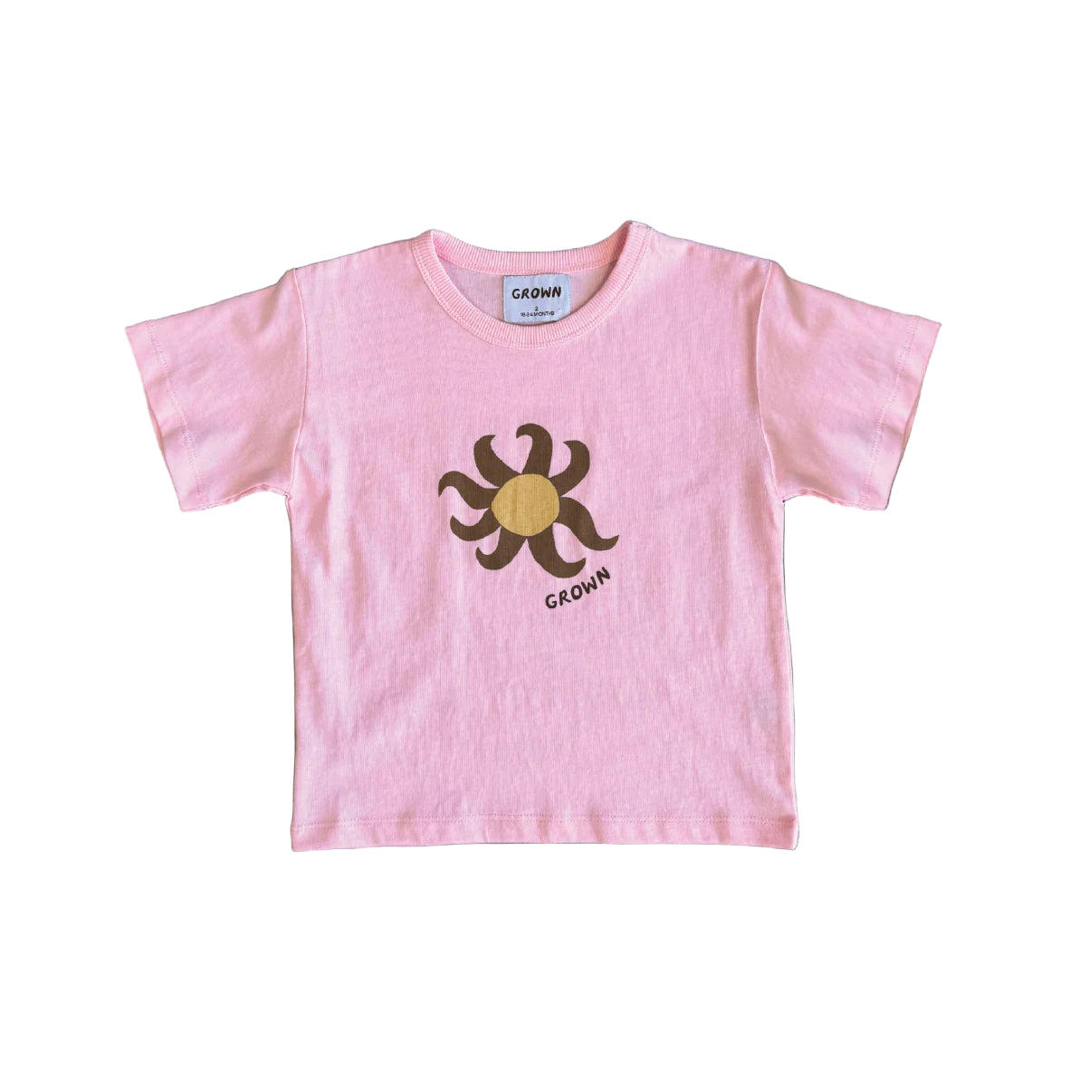 Made from 100% organic cotton, this tee features a charming printed sun design.