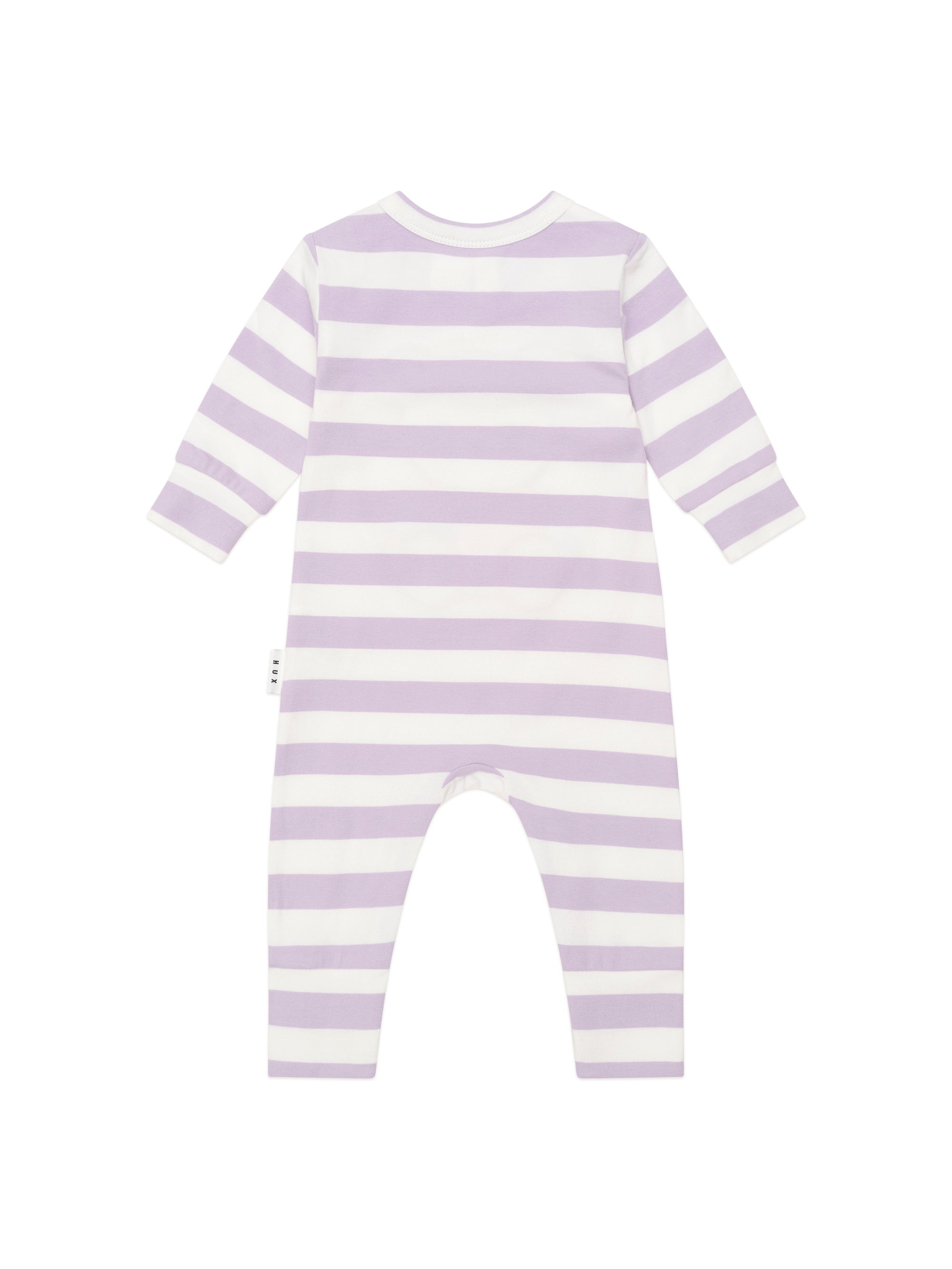HUXBABY College Hux Orchid Stripe Romper - Orchid / Almond Milk