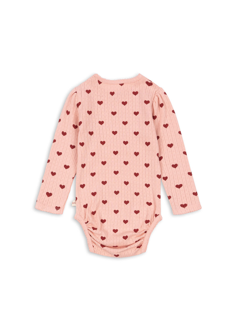 Soft cotton body with decorative pointelle. Designed with buttons at the shoulder up to size 18m for easy dressing.