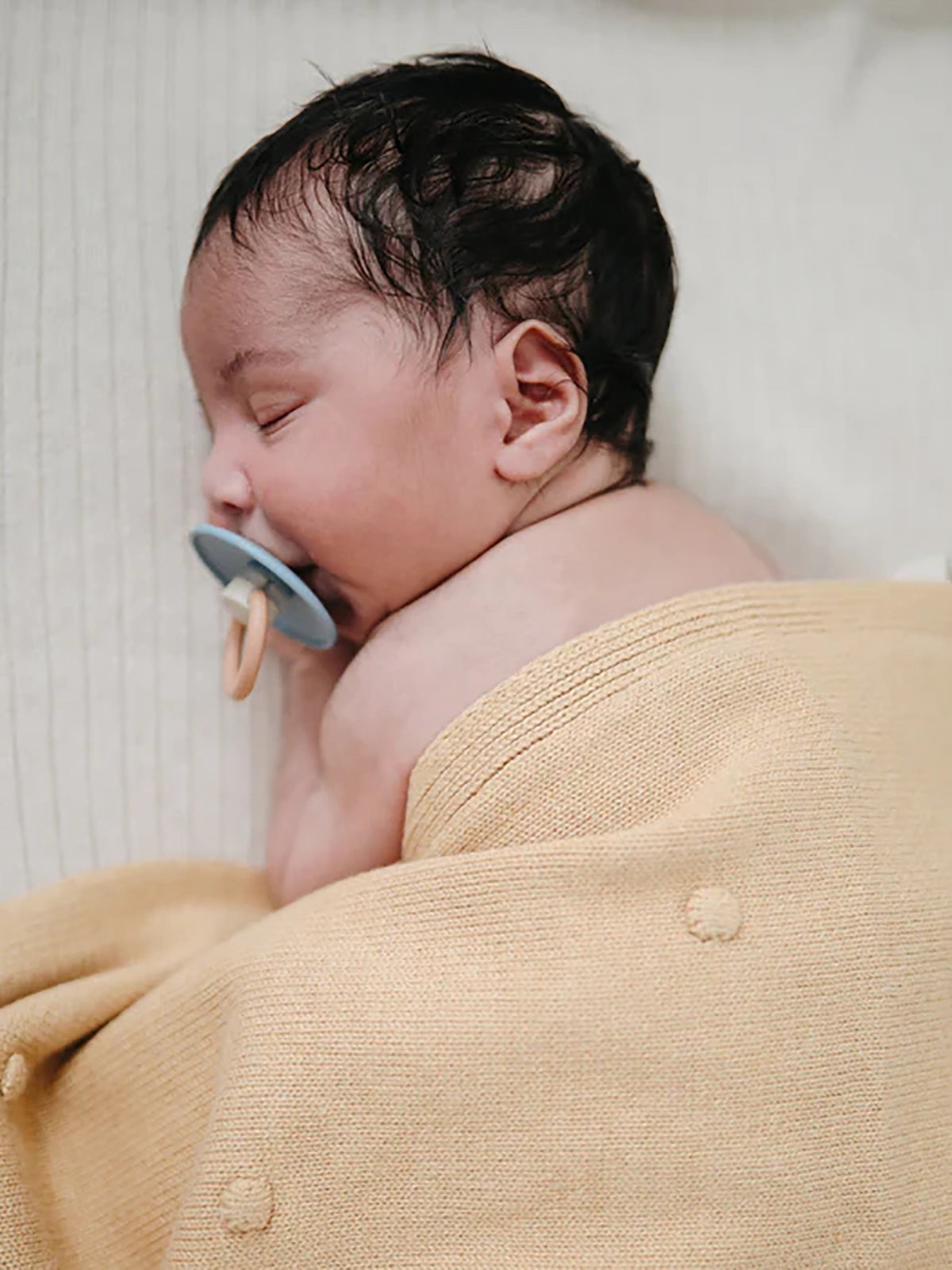 MUSHIE Knitted Blanket - Textured Dots Mustard Melange