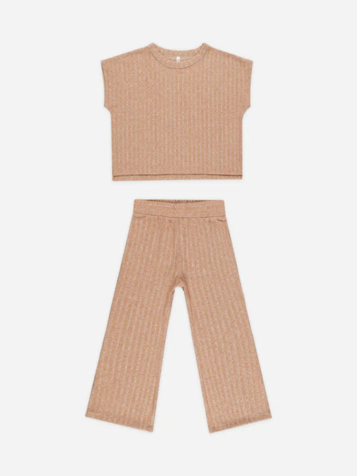 Embrace both coziness and fashion with our Rib Knit Set in refreshing grapefruit color. This ensemble pairs a relaxed boxy long sleeve top with comfortable wide leg pants featuring an elastic waistband for easy wear. The perfect summer outfit that combines laid-back style with the softness your little one deserves.