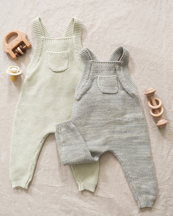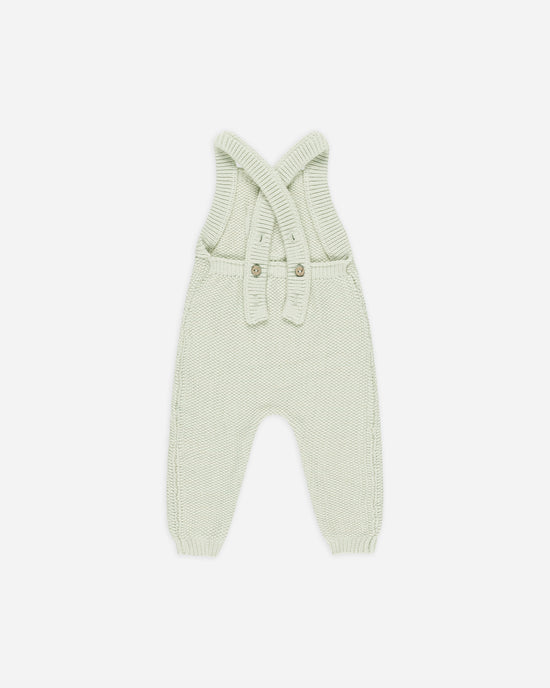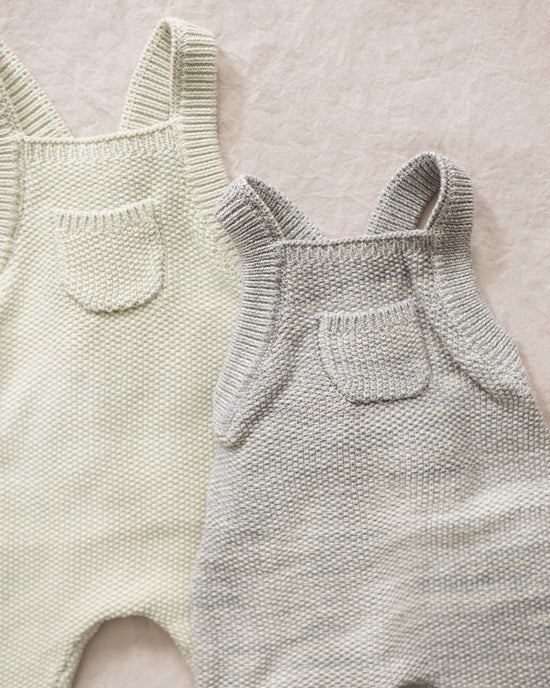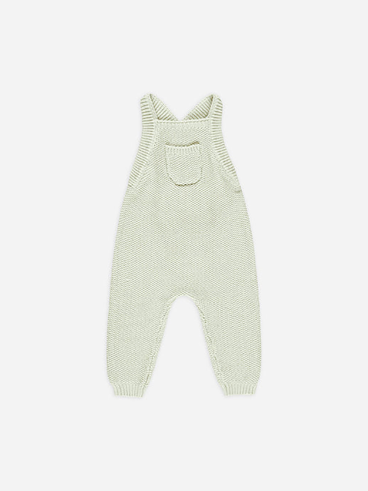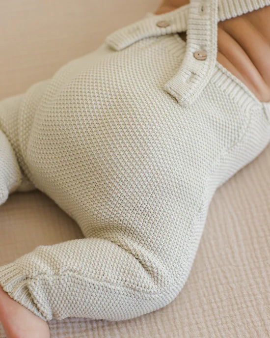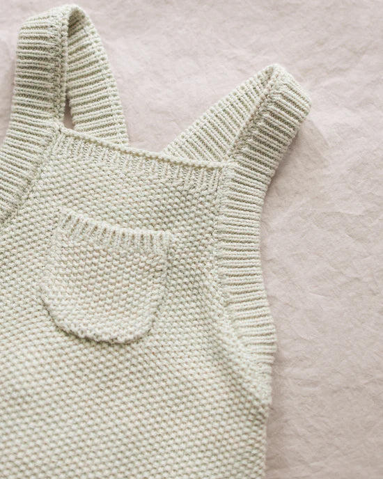 Our sweater Knit Overall features adjustable button straps and a small rounded front pocket.