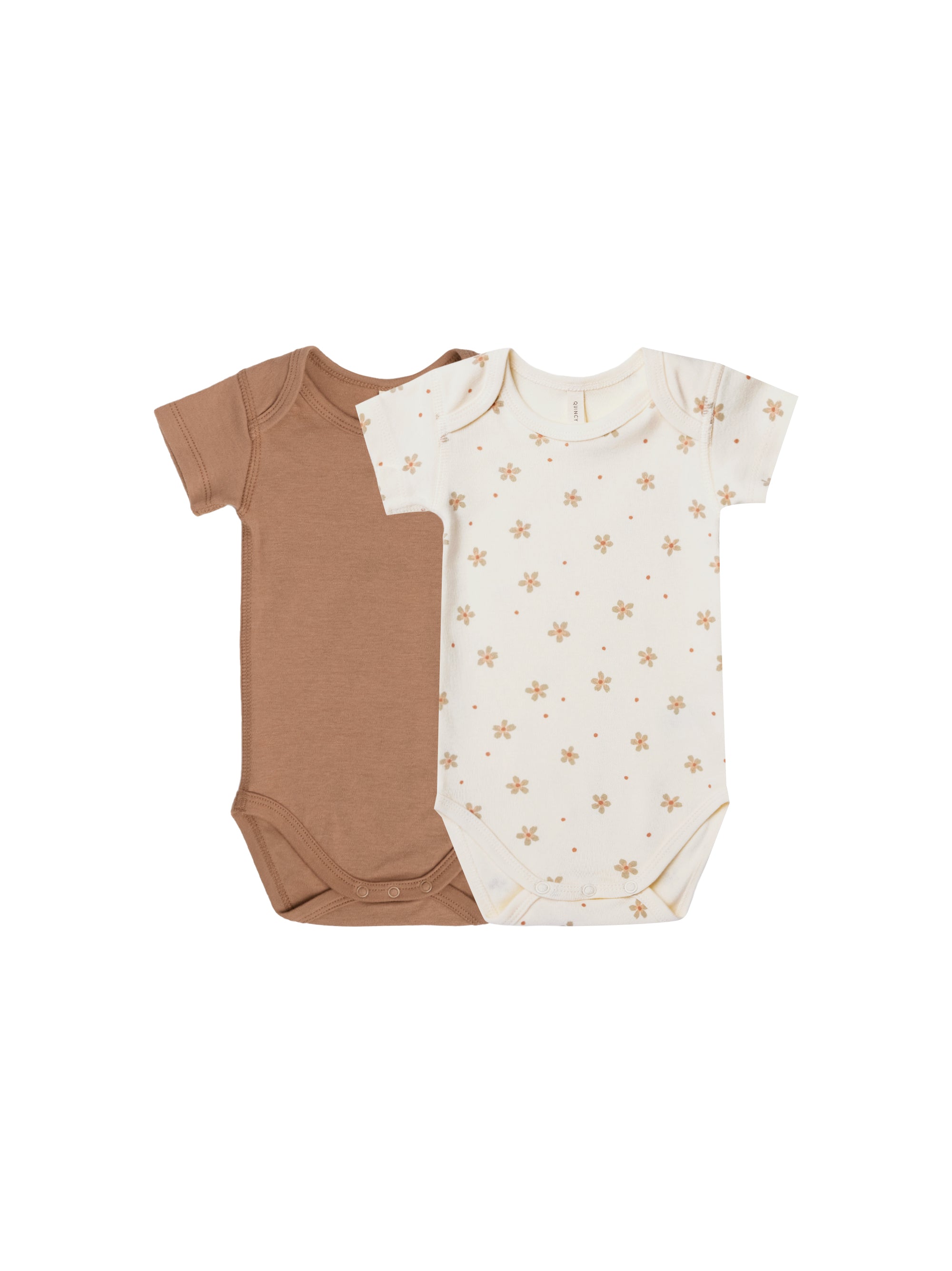 QUINCY MAE Short Sleeve Bodysuit 2 Pack - Clay + Dotty Floral